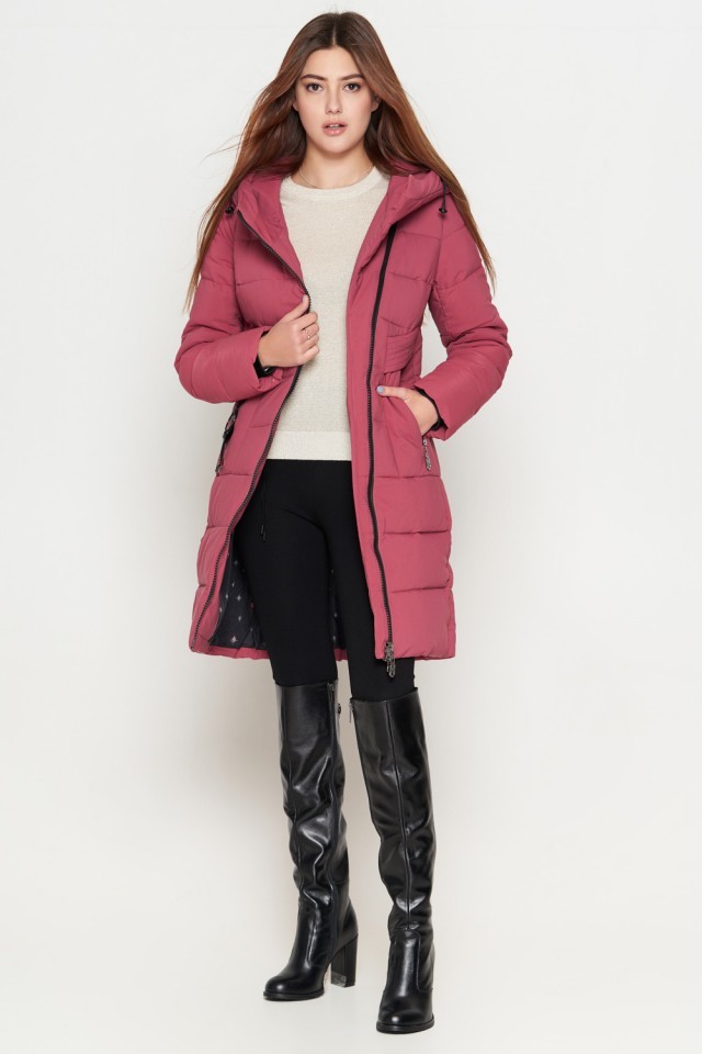 Пуховик молодежный зимний женский цвет розовый модель 25325