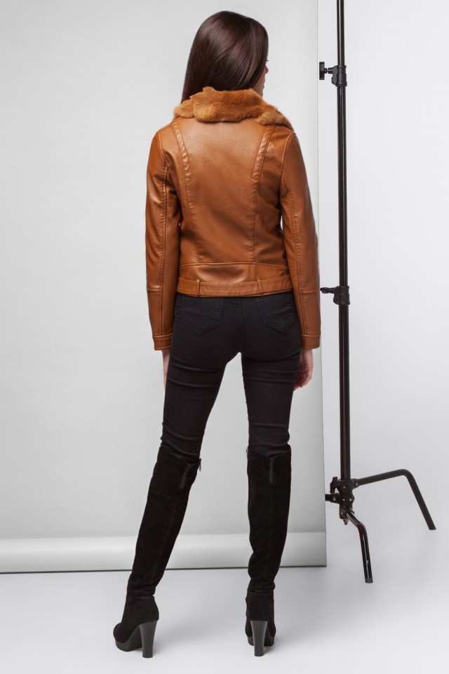 Пуховик осенне-весенний женский молодежный цвет коричневый модель 25582