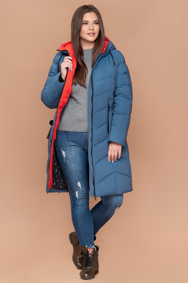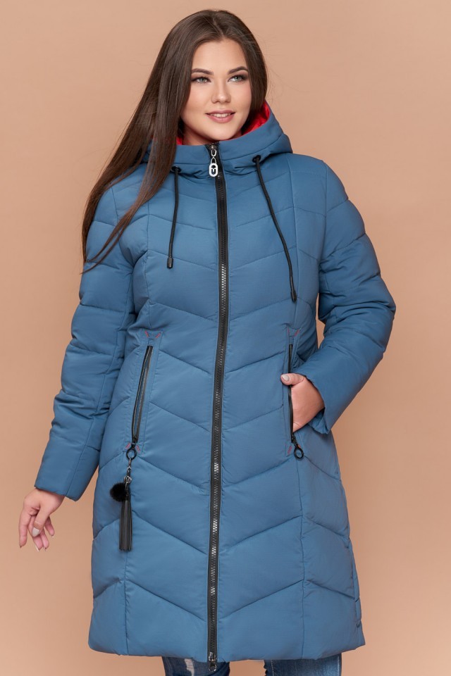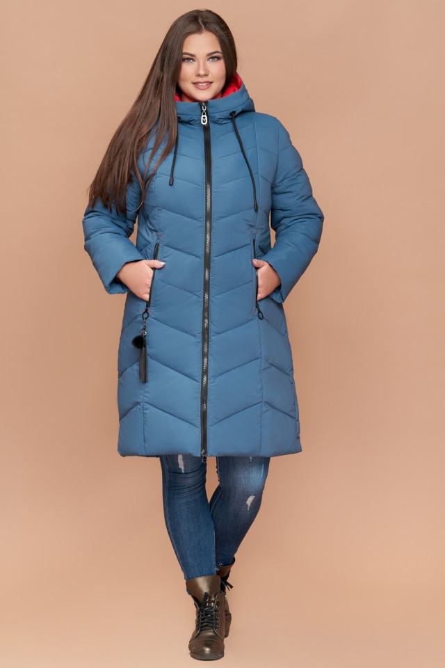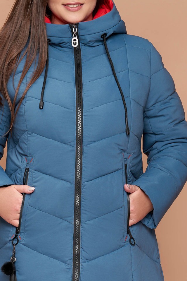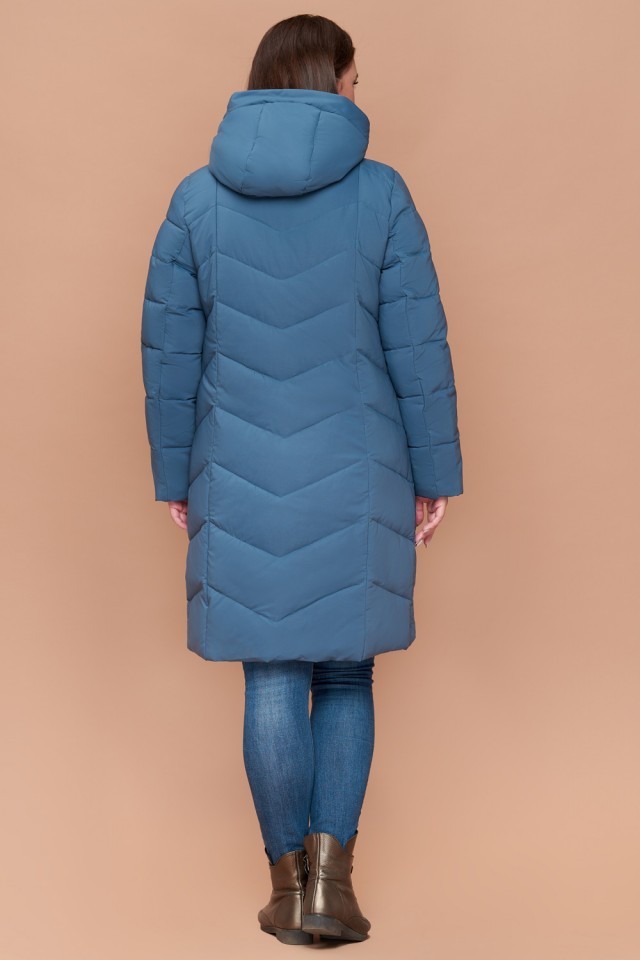Пуховик темно-голубой большого размера на зиму женский модель 25695