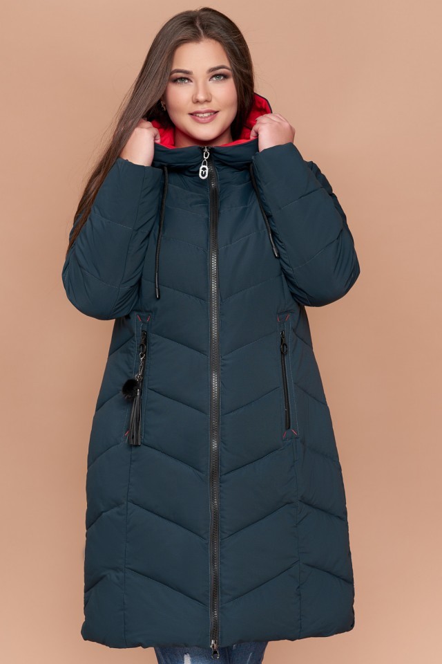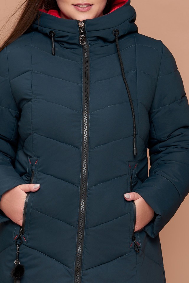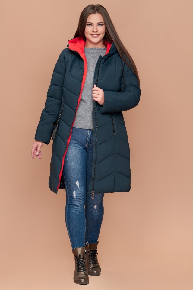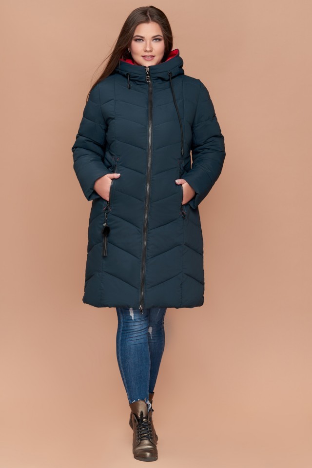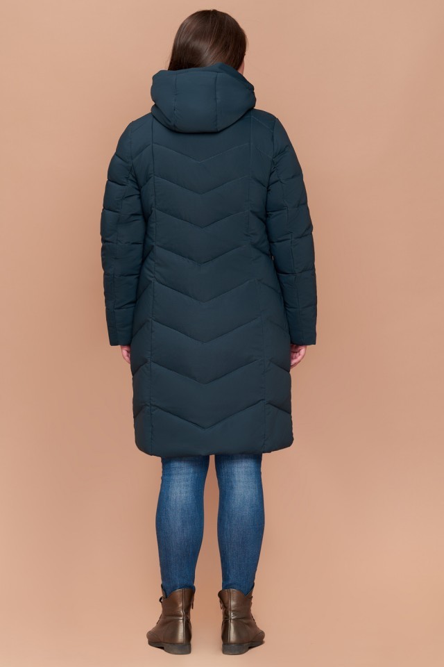 Пуховик темно-зеленый большого размера на зиму женский модель 25695
