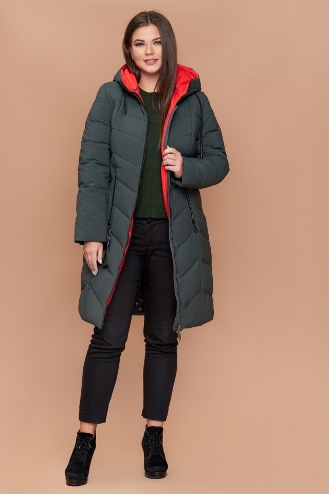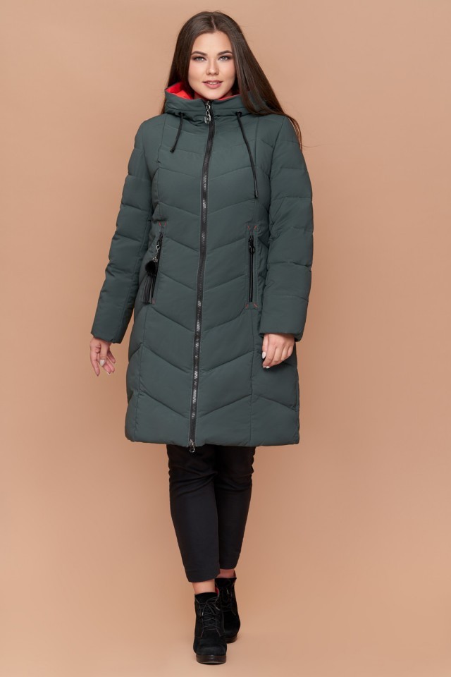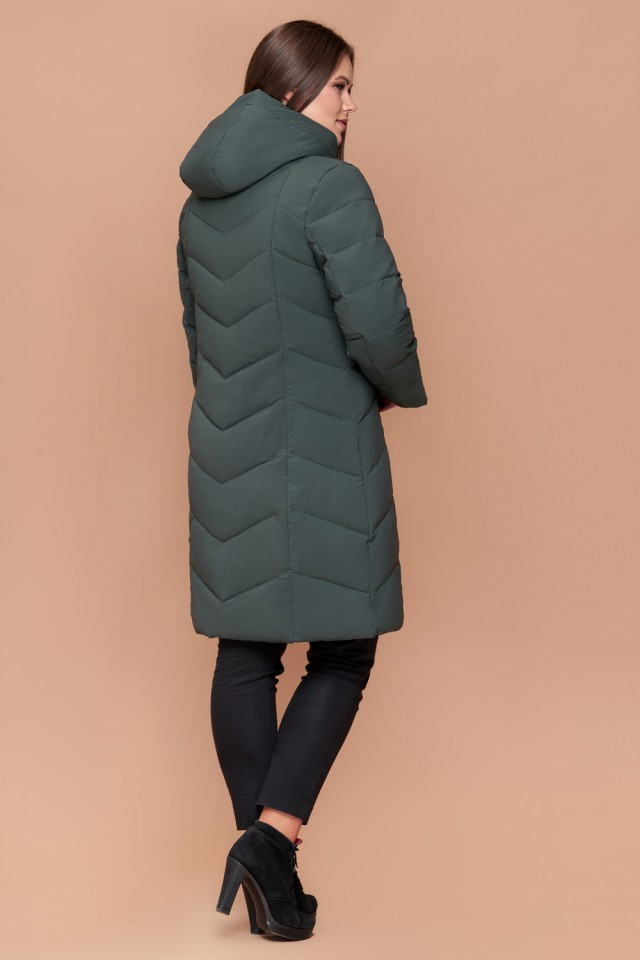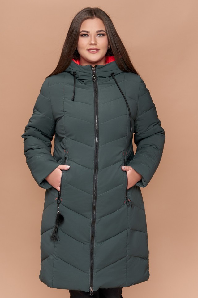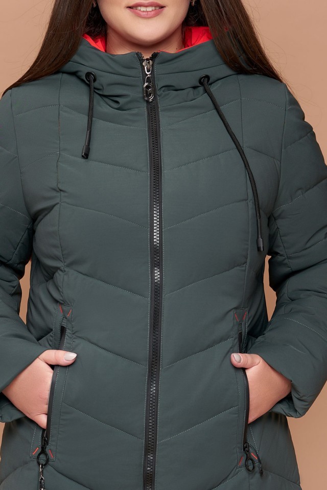 Пуховик женский большого размера зимний серо-зеленый модель 25695