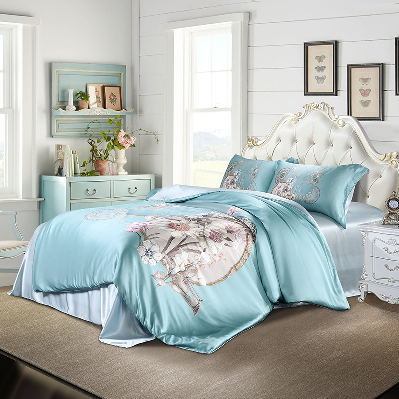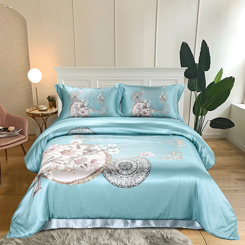 Шелковый комплект постельного белья Голубой пион. Silk Kiss