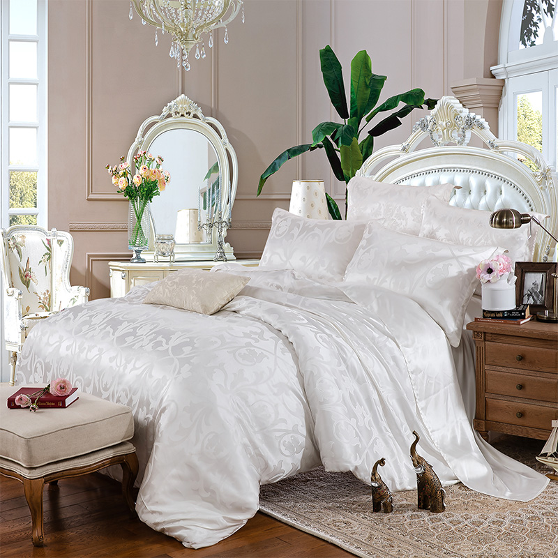 Шелковый комплект постельного белья Королевский белый. Silk Kiss