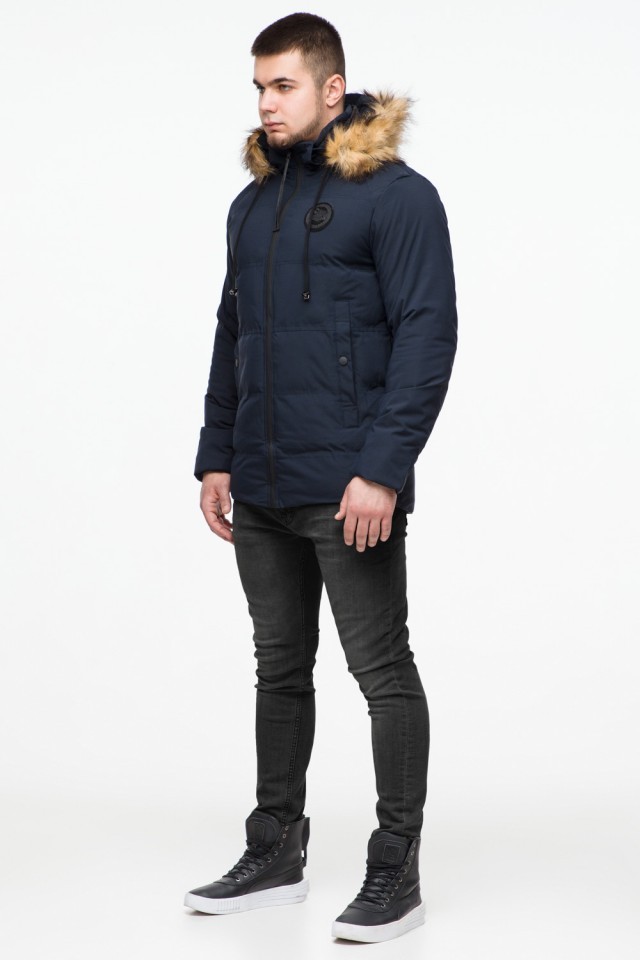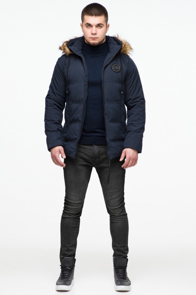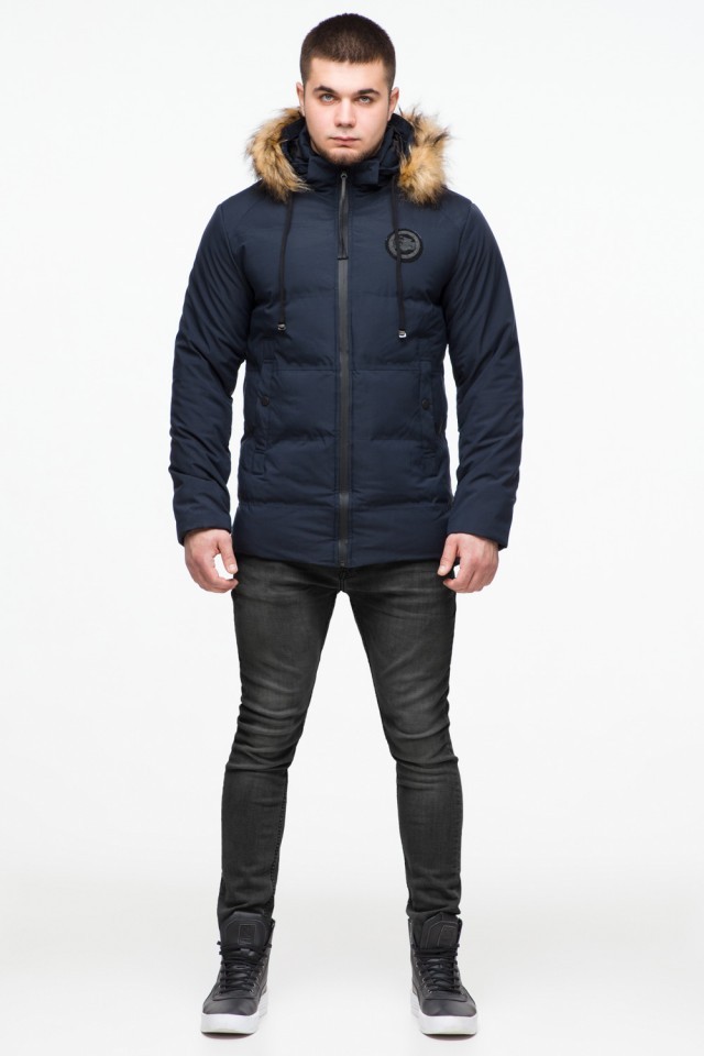 Синяя короткая куртка молодежная зимняя для мужчин модель 25550