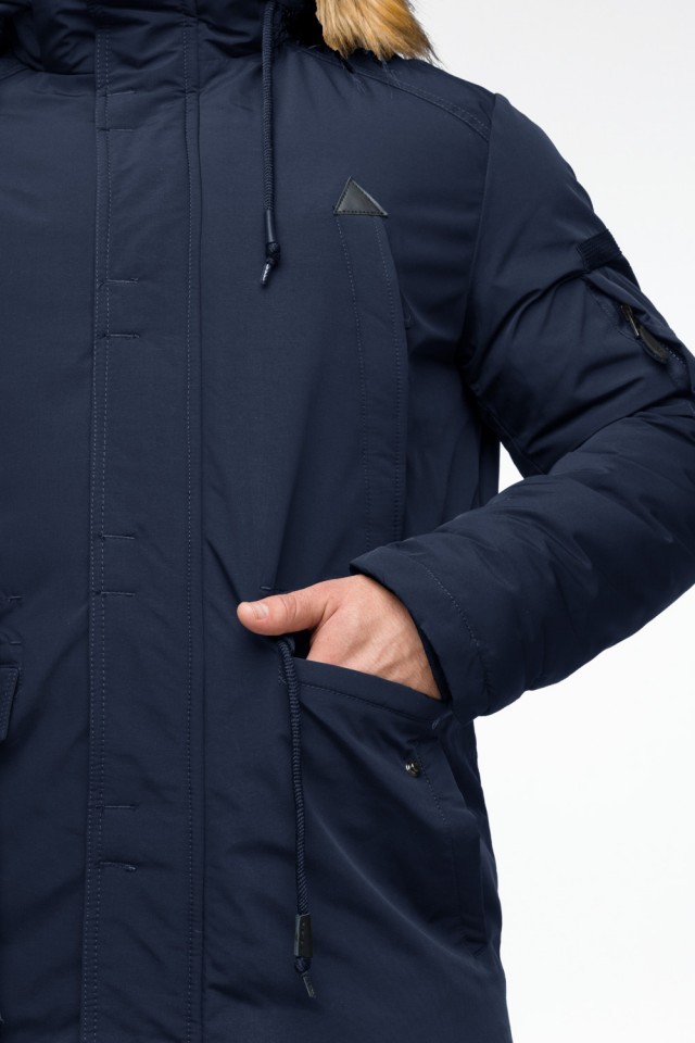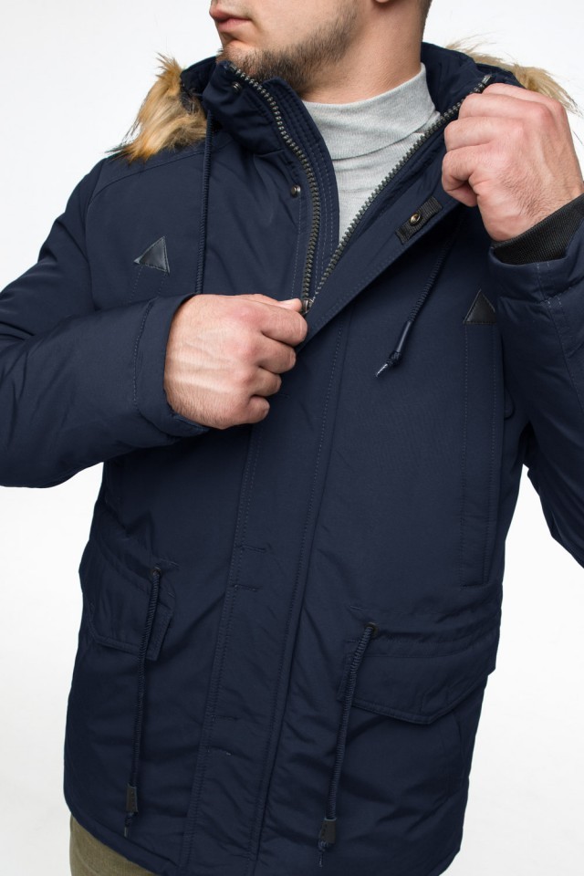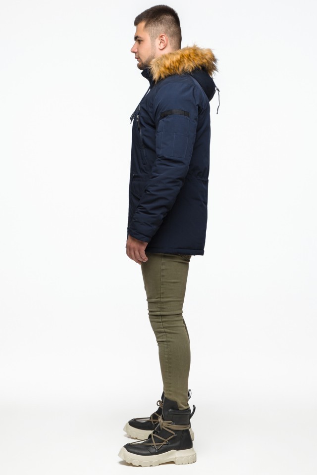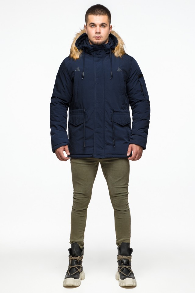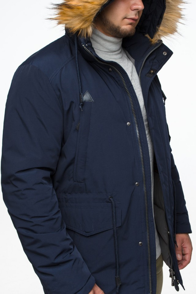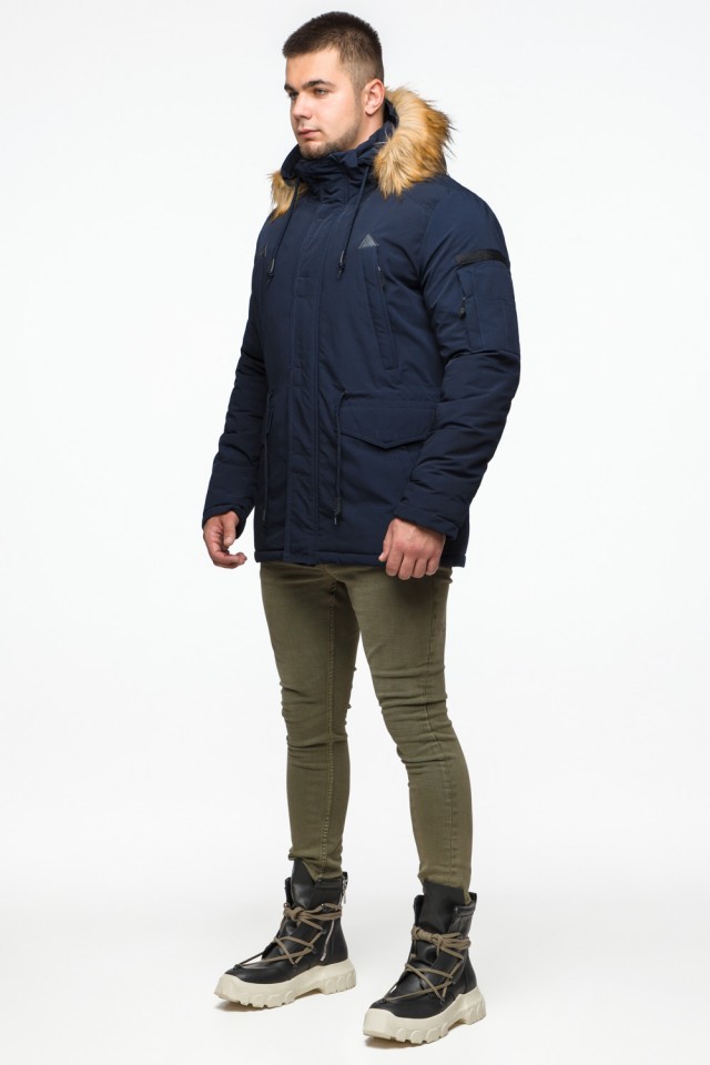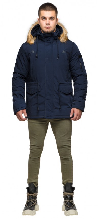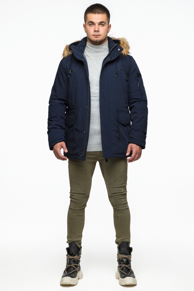 Синяя мужская молодежная парка зимняя с капюшоном модель 25770