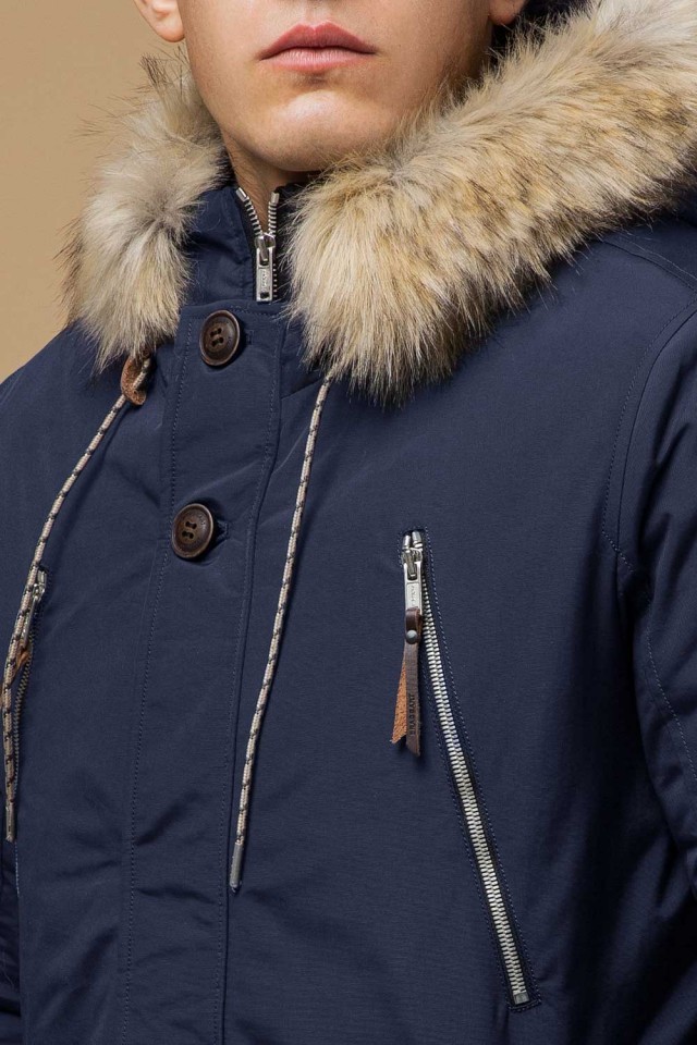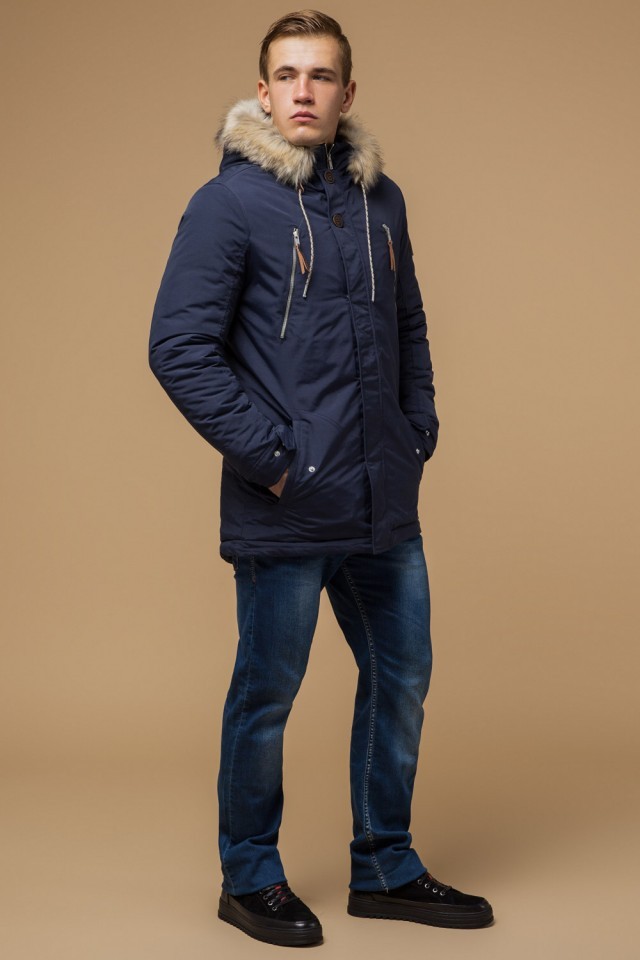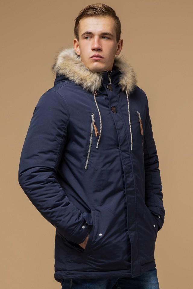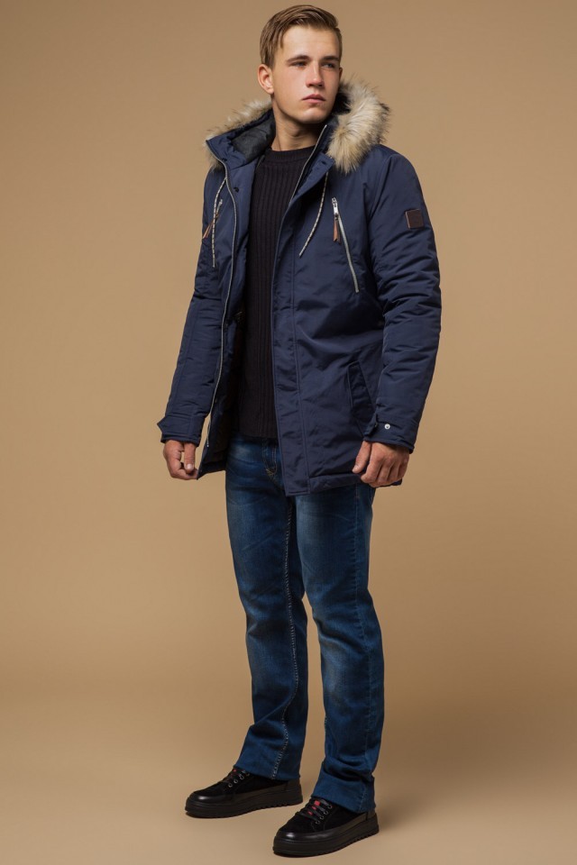 Синяя зимняя короткая парка для мужчин модель 14015