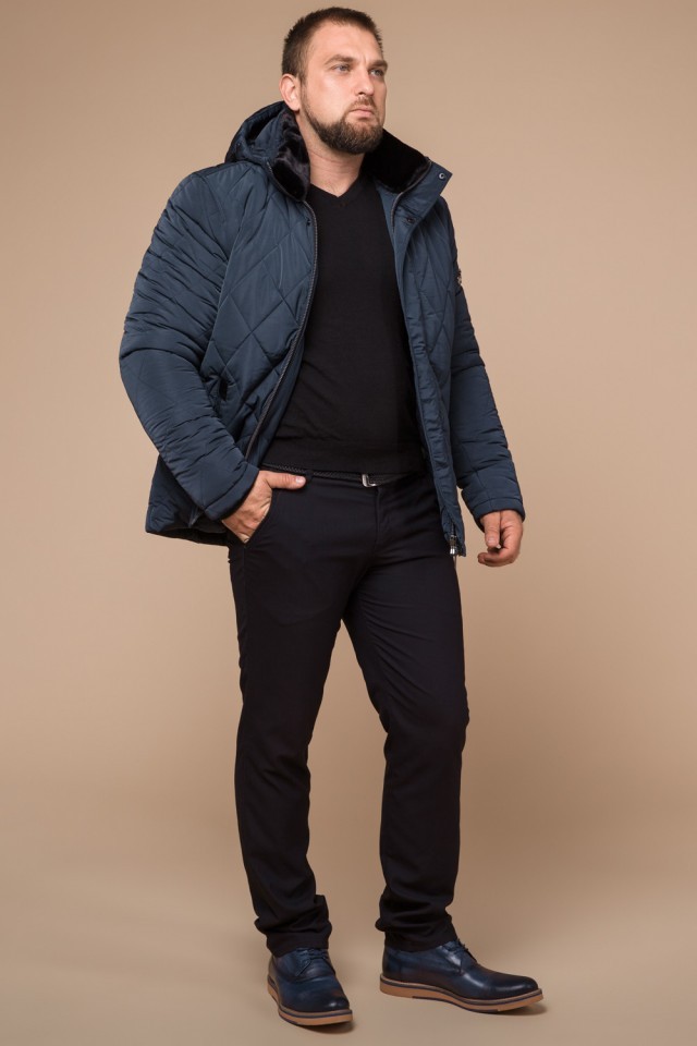 Светло-синяя зимняя теплая куртка для мужчин модель 19121