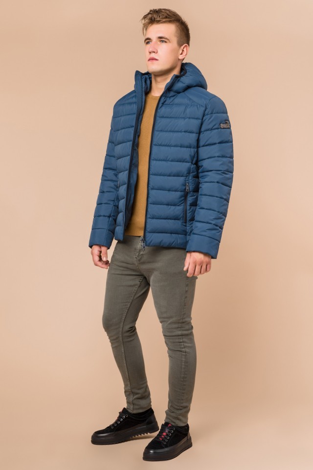 Темно-бирюзовая мужская куртка с карманами модель 40962