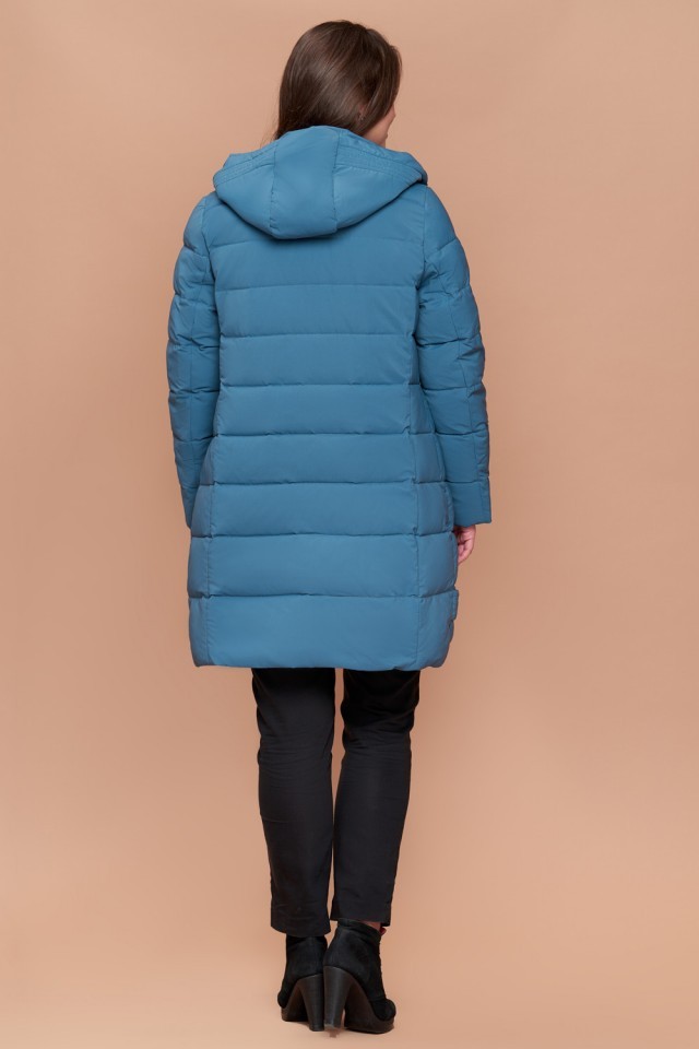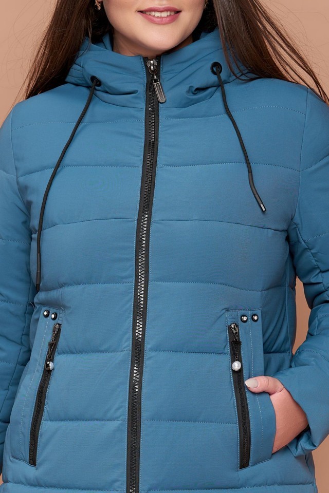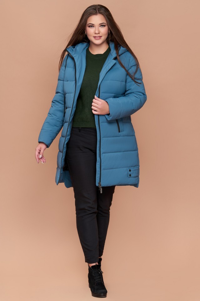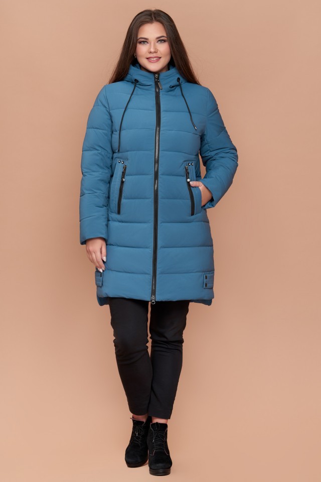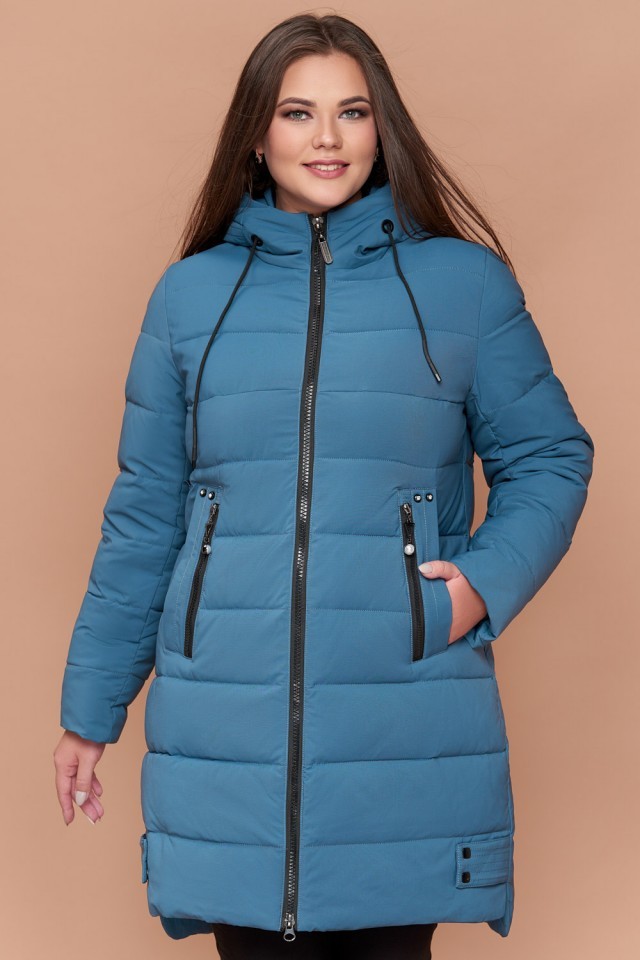 Темно-голубой женский пуховик зимний большого размера модель 25225