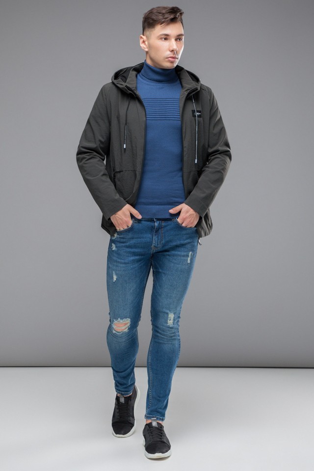 Темно-серая мужская осенне-весенняя ветровка молодежная модель 24242