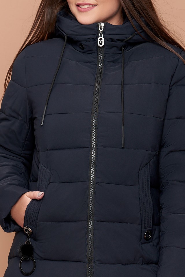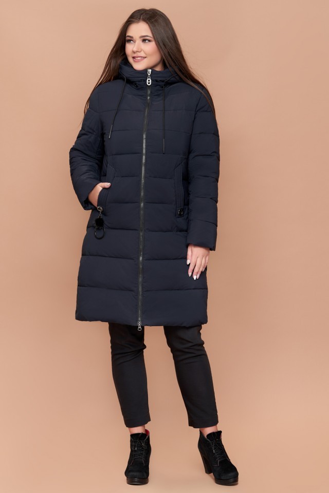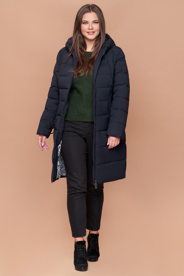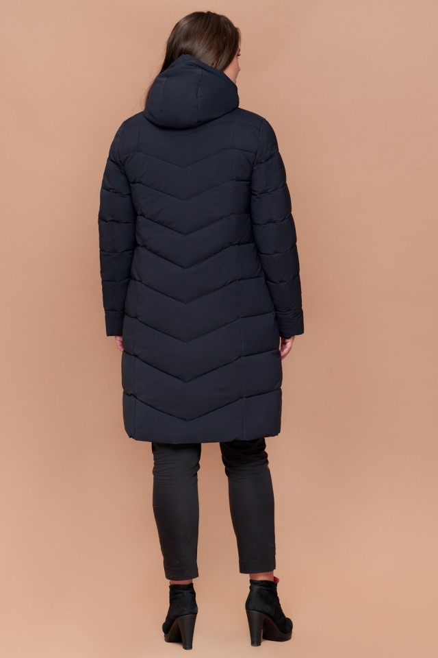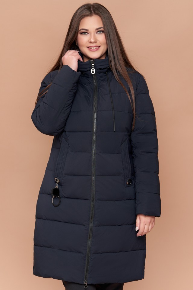 Темно-синий пуховик женский большого размера на зиму модель 25095