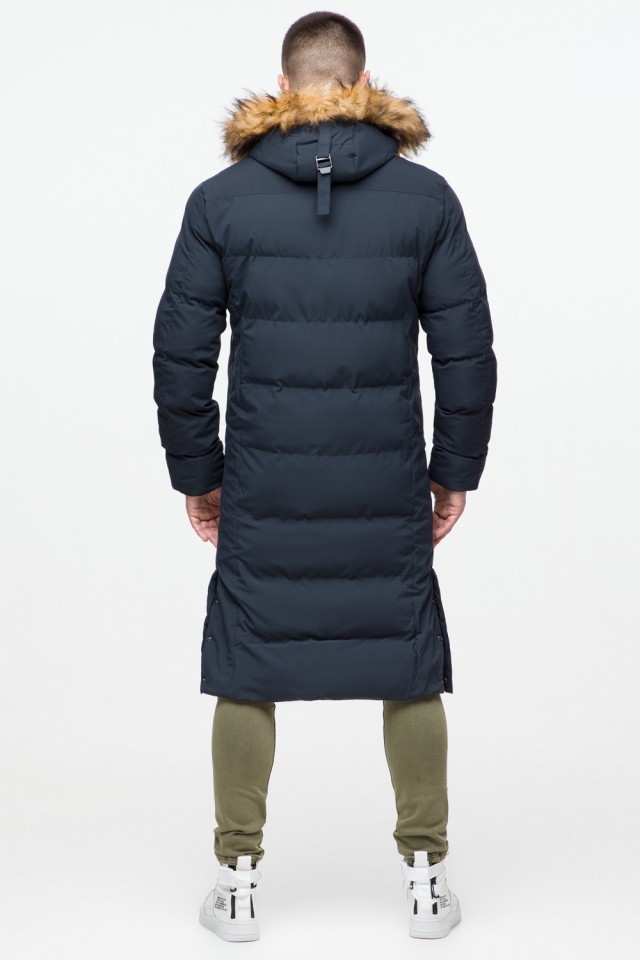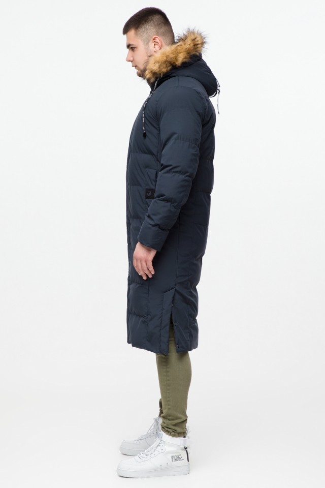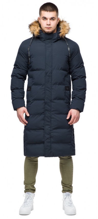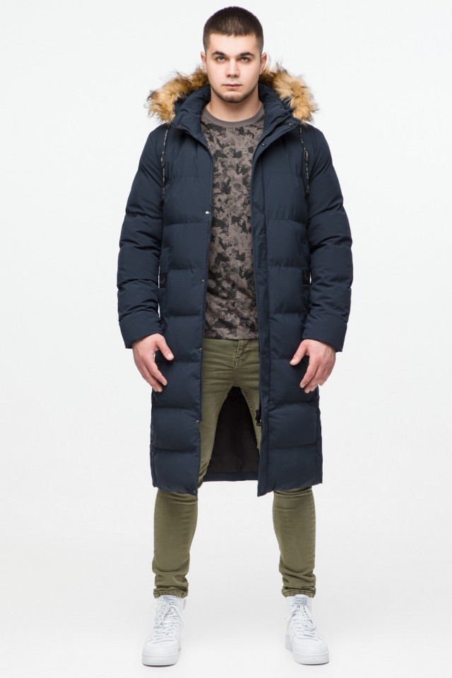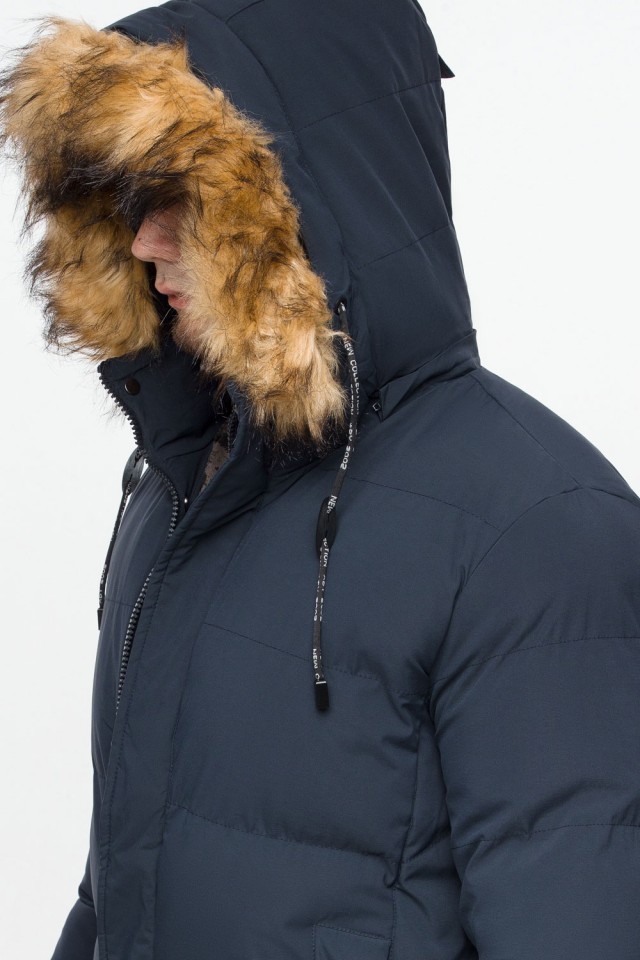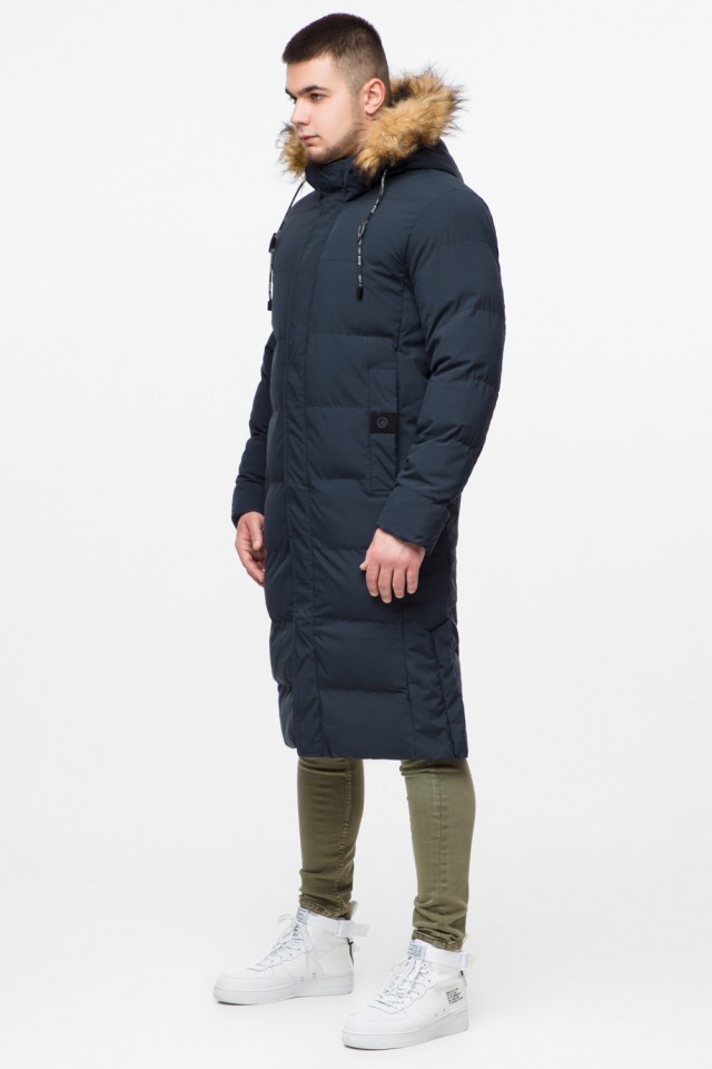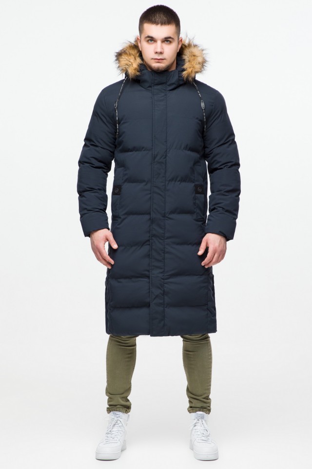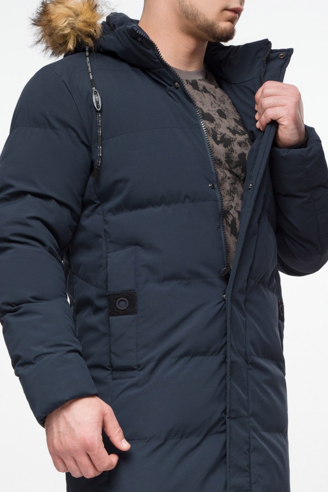 Темно-синяя куртка молодежная зимняя мужская с карманами модель 25590