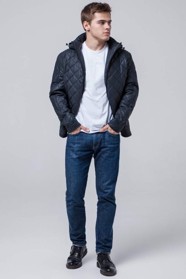 Темно-синяя молодежная короткая куртка осенне-весенняя мужская модель 2072