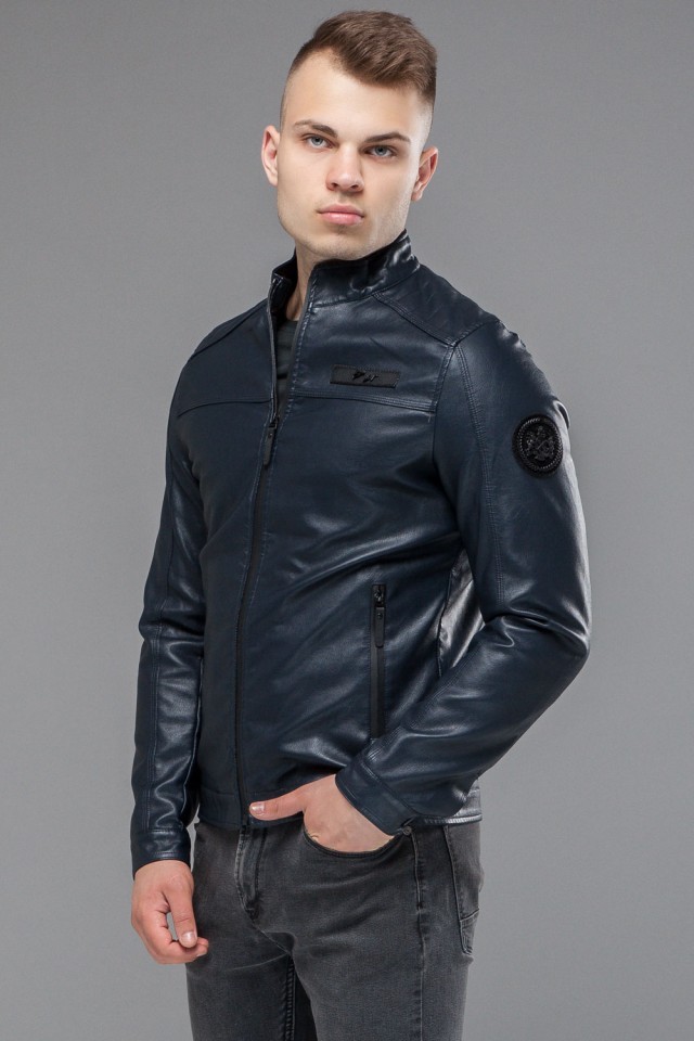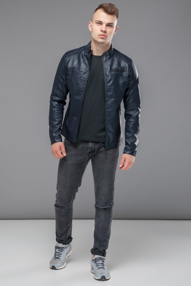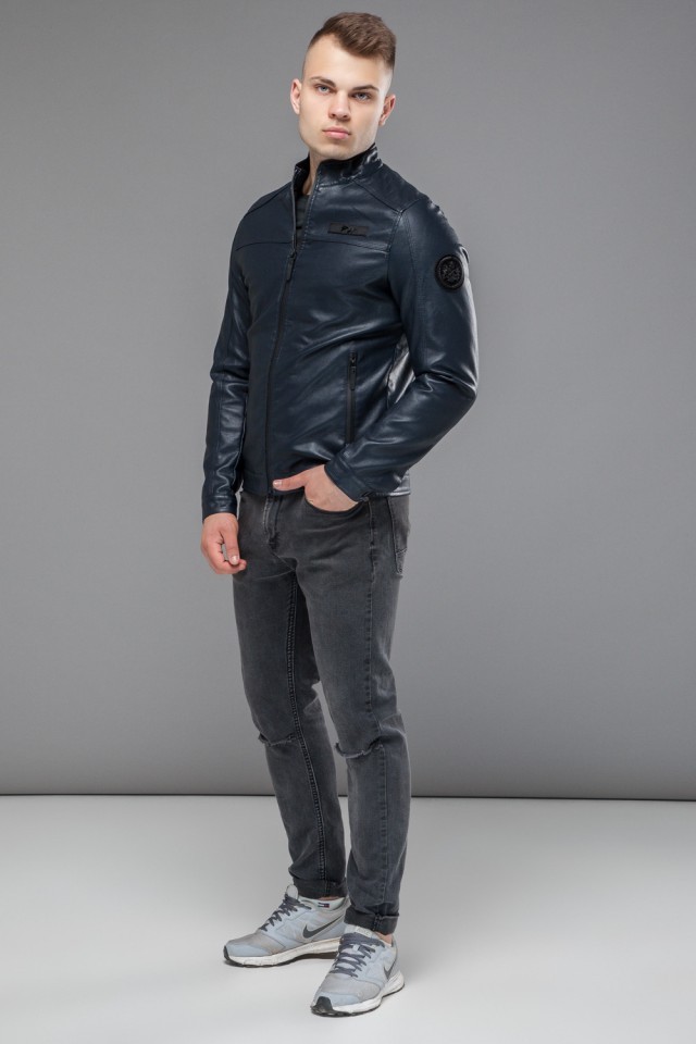 Темно-синяя молодежная куртка осенне-весенняя на молнии мужская модель 25825