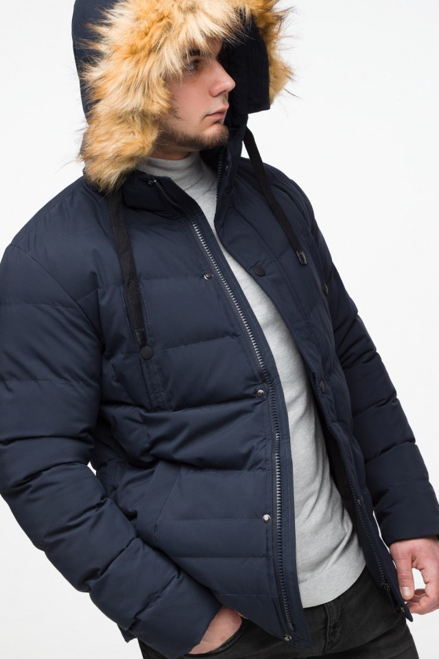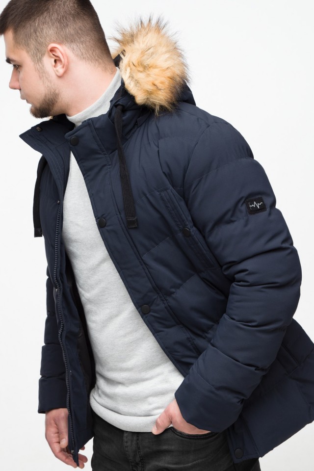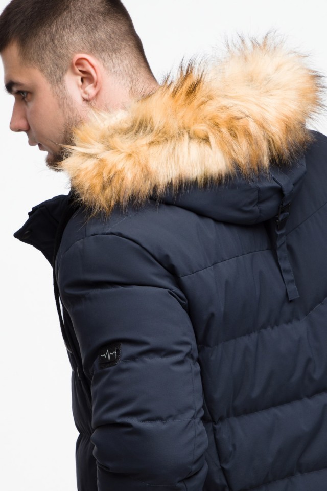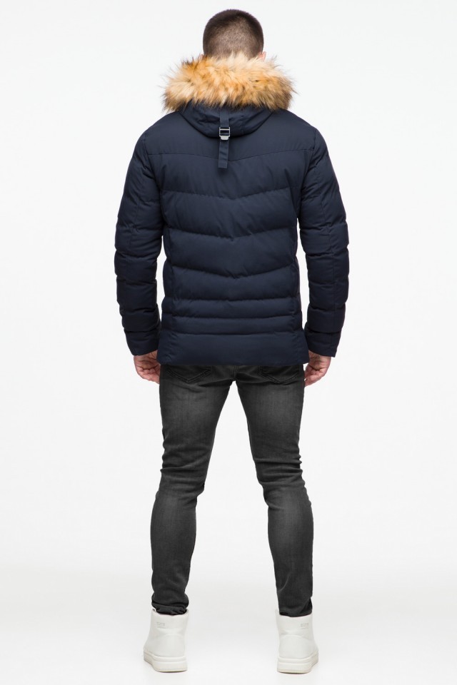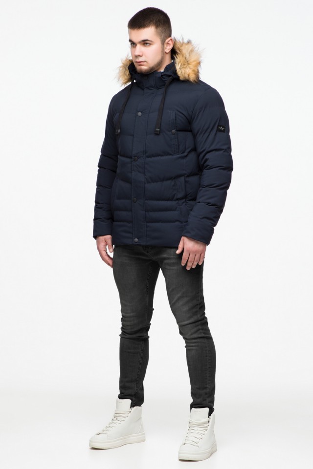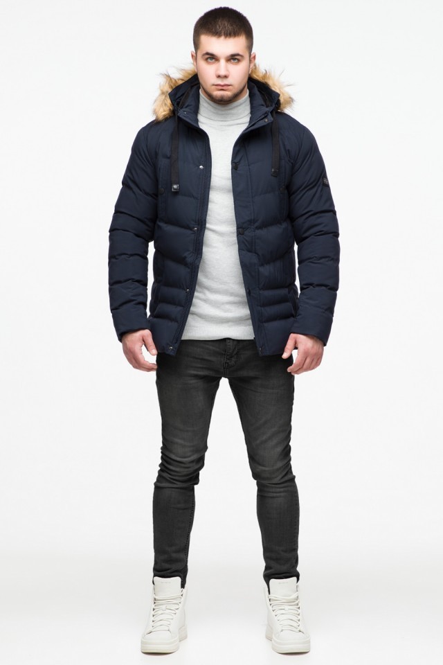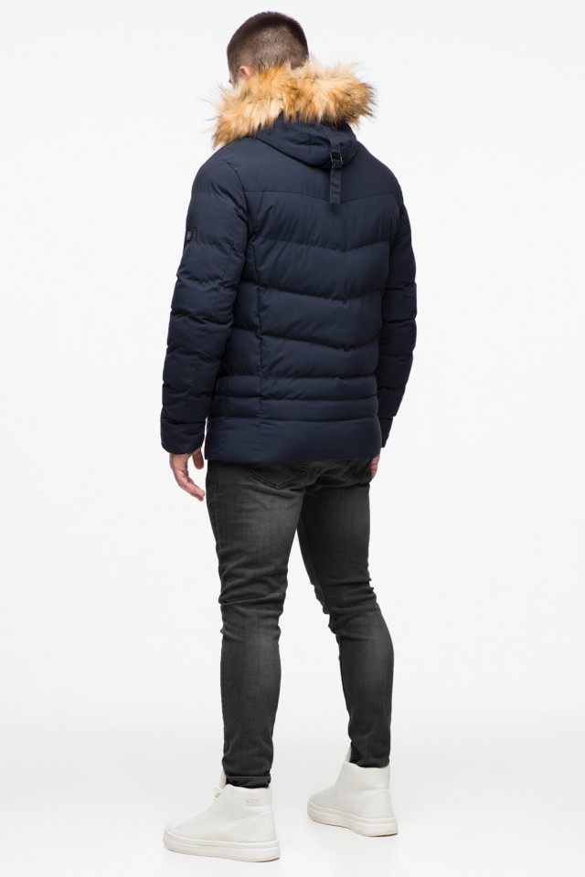 Темно-синяя молодежная мужская куртка зимняя с опушкой модель 25370