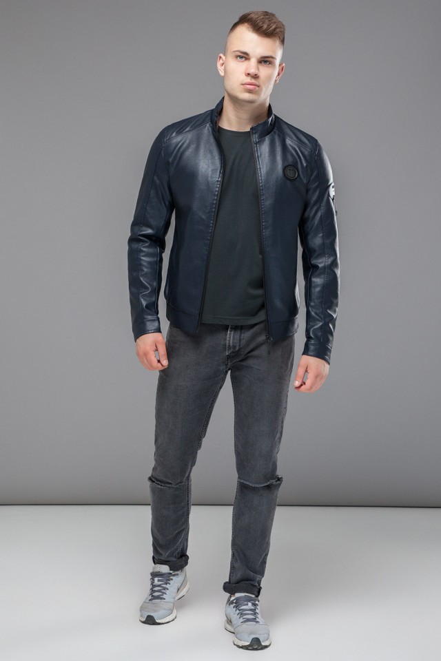 Темно-синяя мужская молодежная куртка непромокаемая осенне-весенняя модель 43663