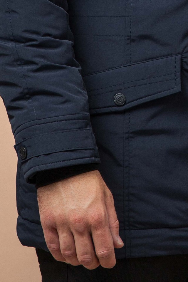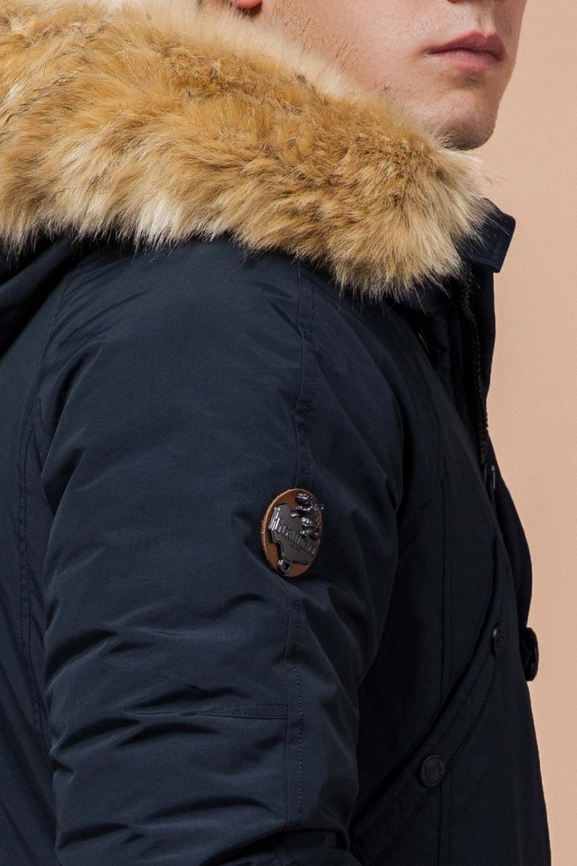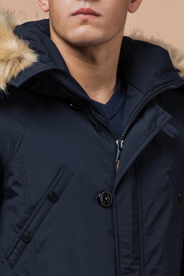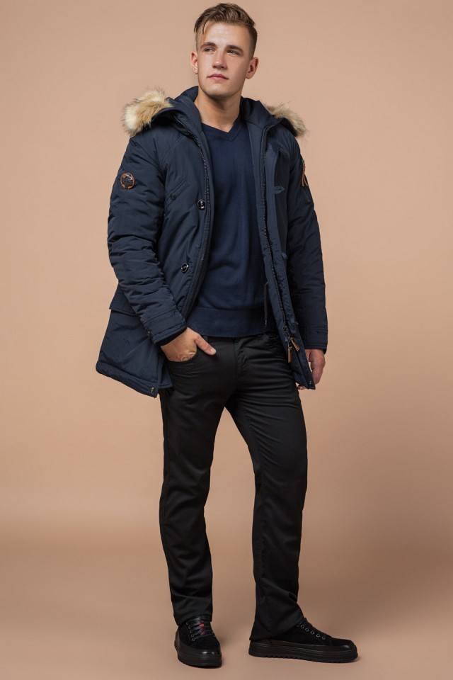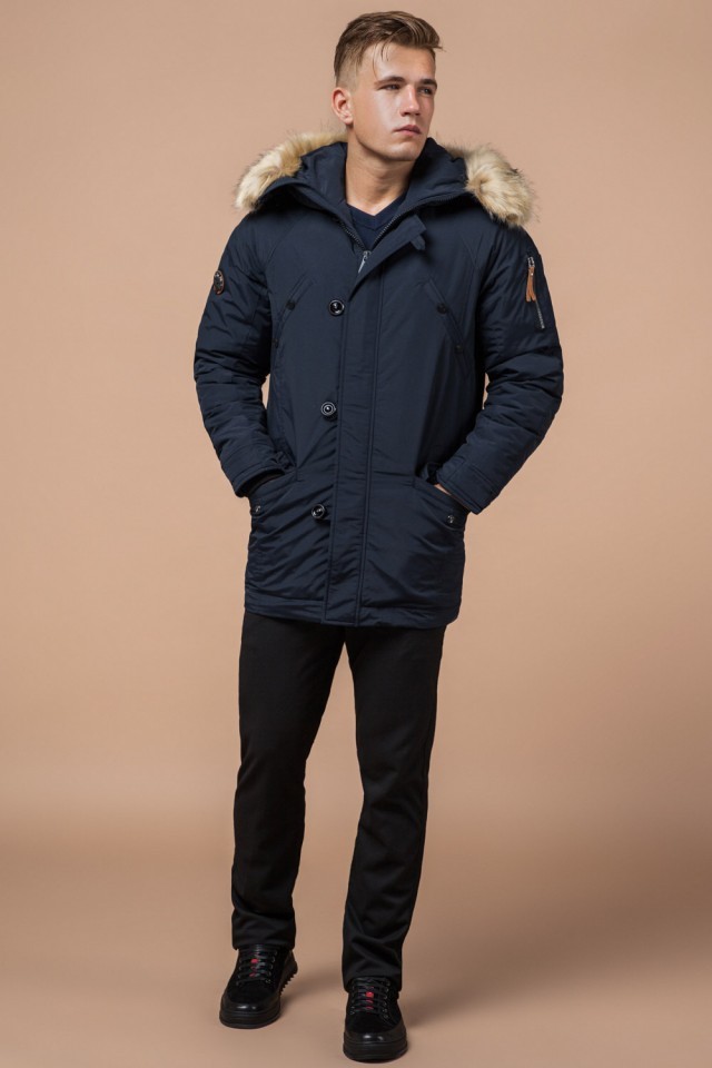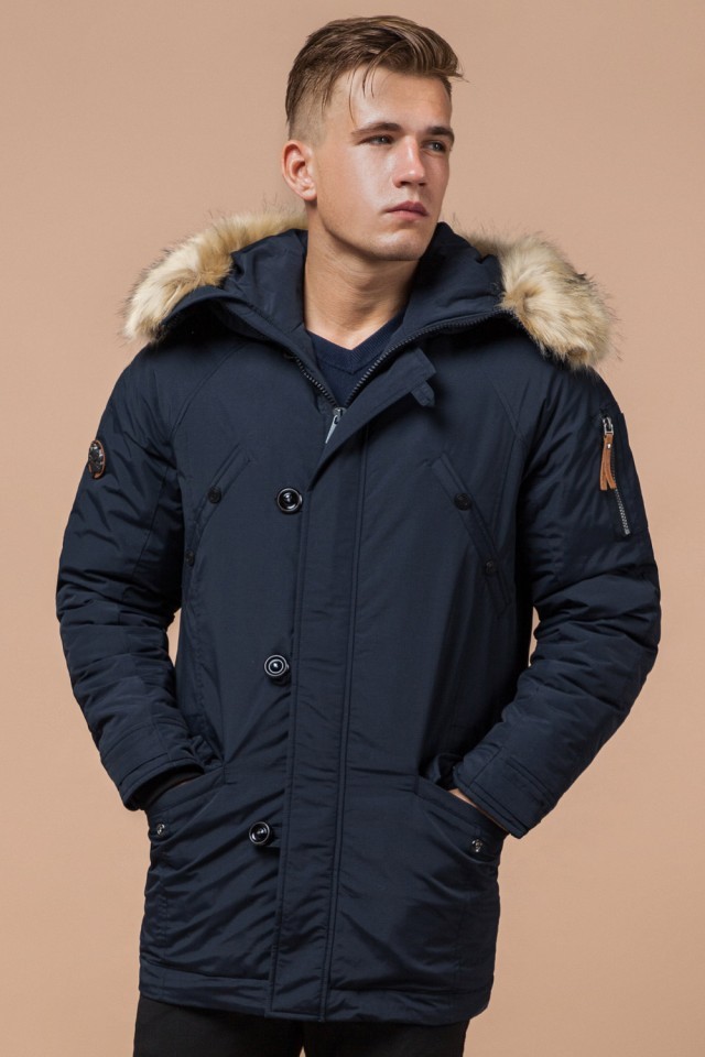 Темно-синяя мужская зимняя парка с меховой опушкой модель 3986