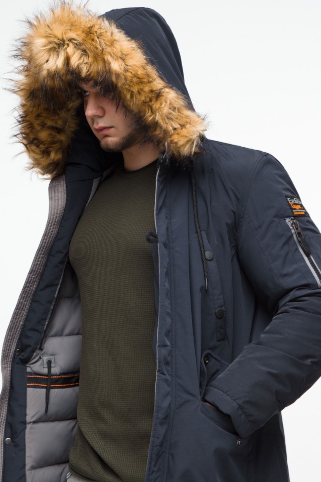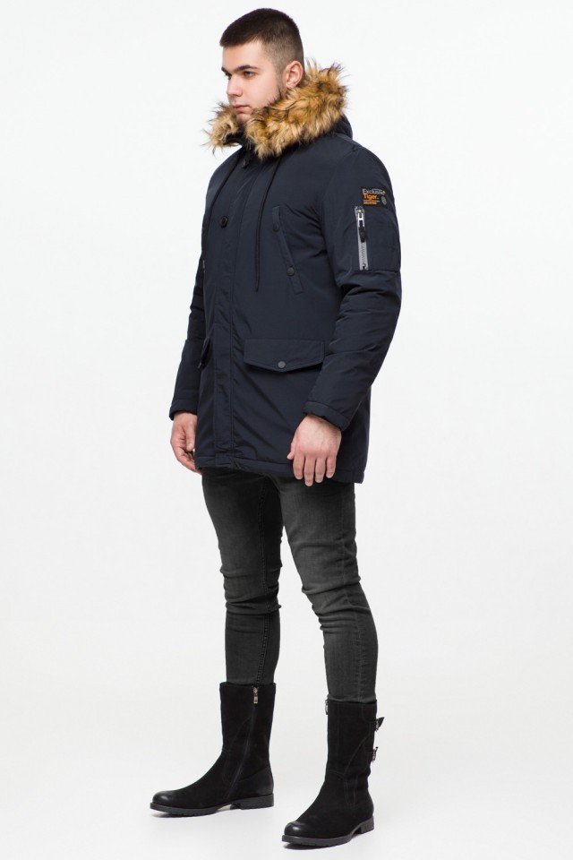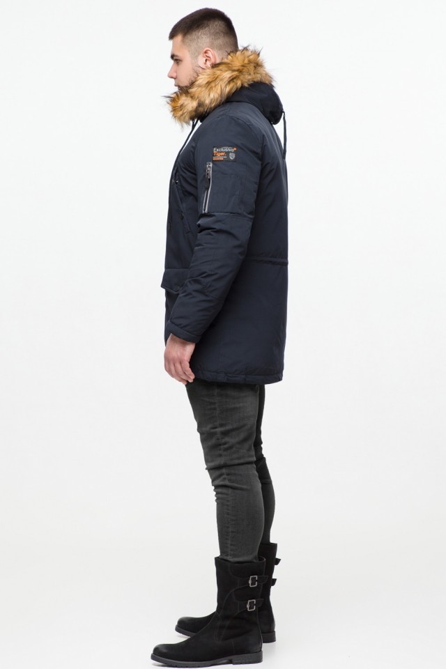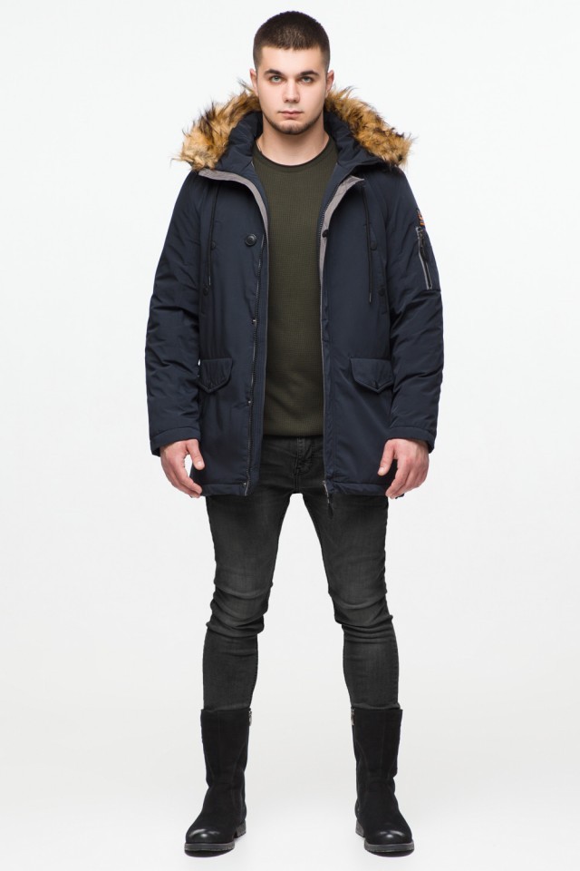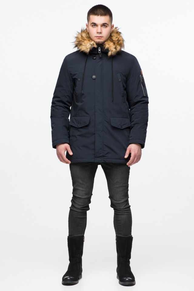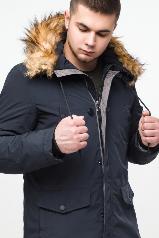 Темно-синяя парка мужская молодежная на зиму модель 25520
