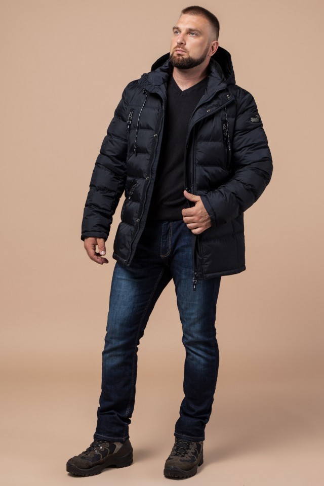 Темно-синяя теплая куртка зимняя мужская модель 27635