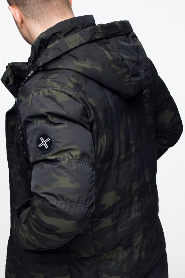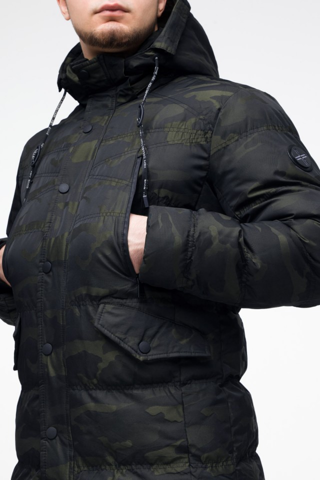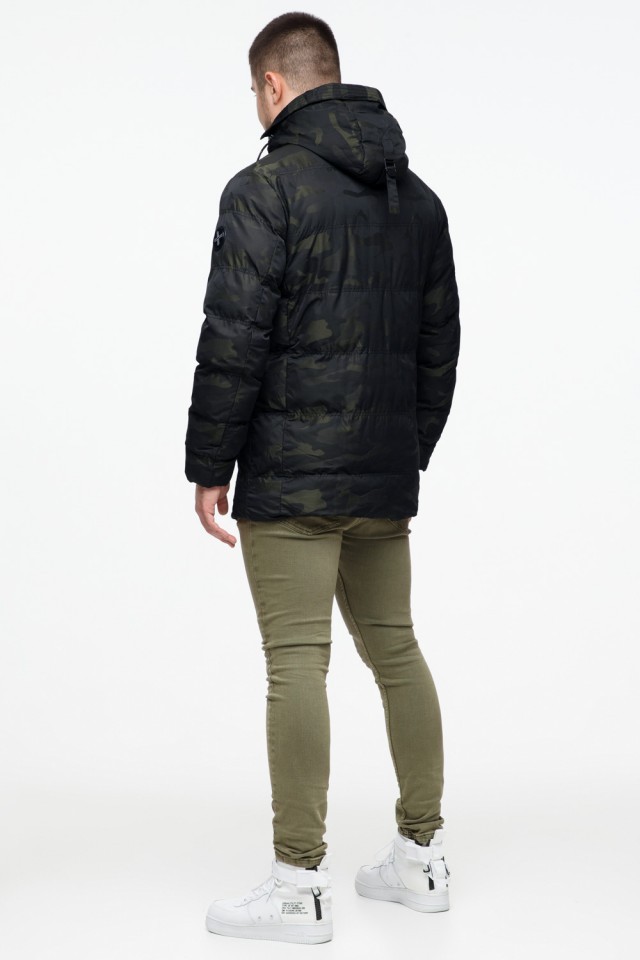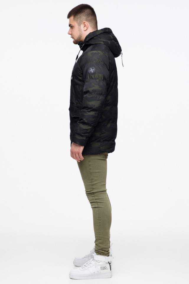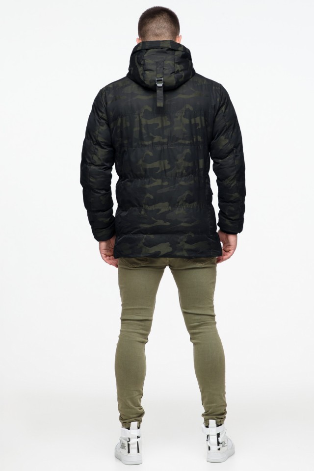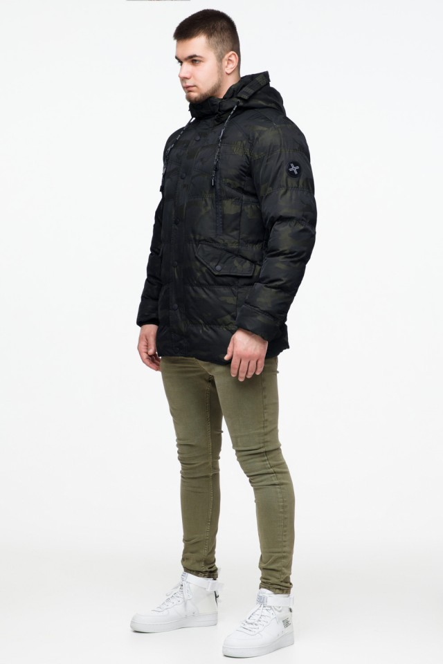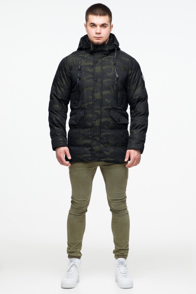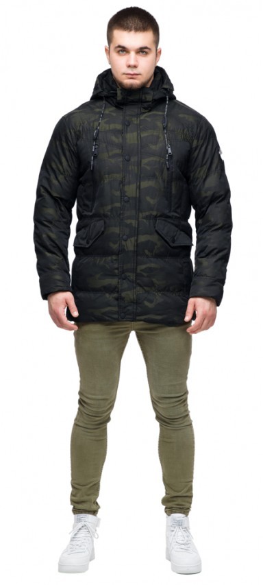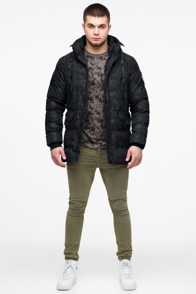 Темно-зеленая мужская молодежная куртка дизайнерская на зиму модель 25140