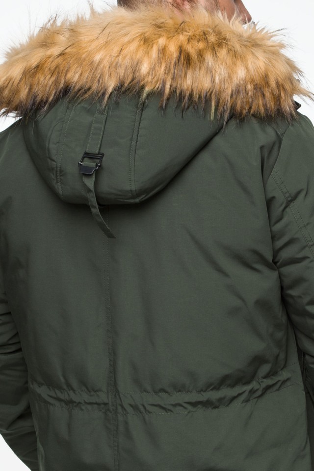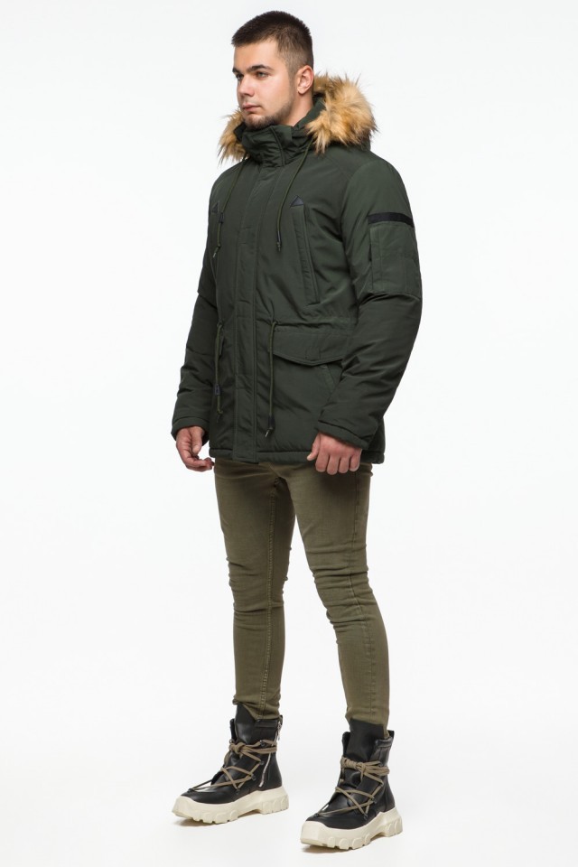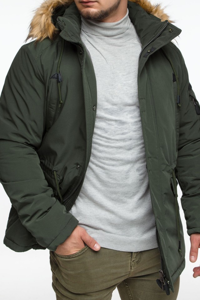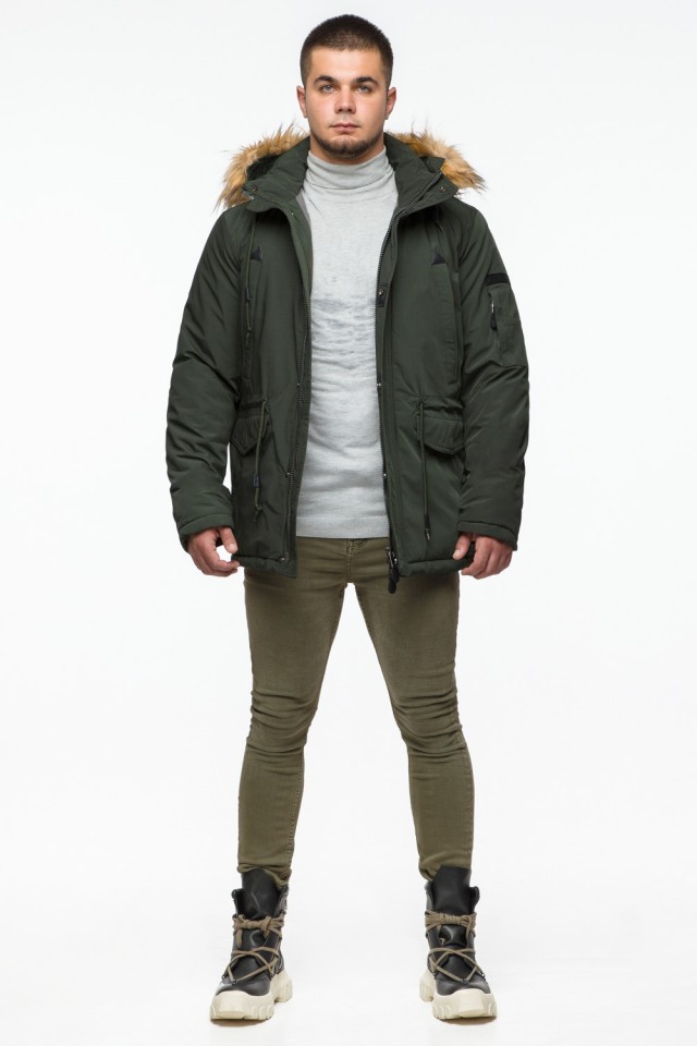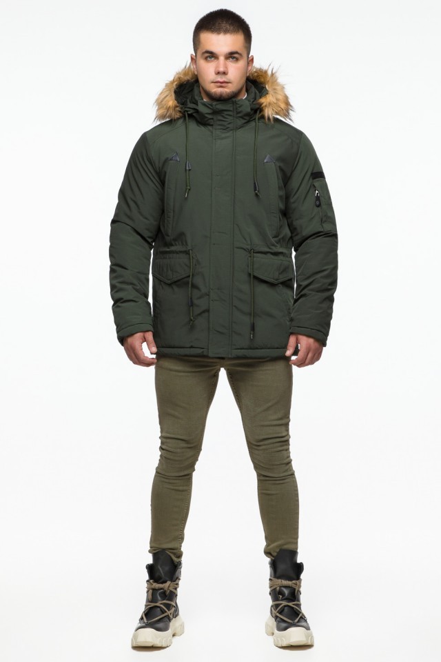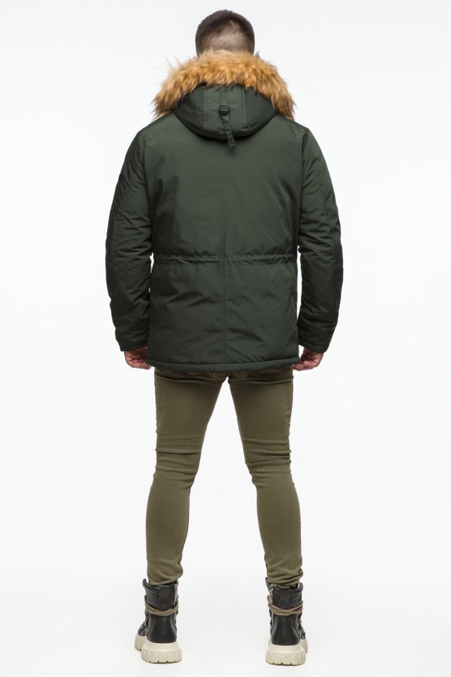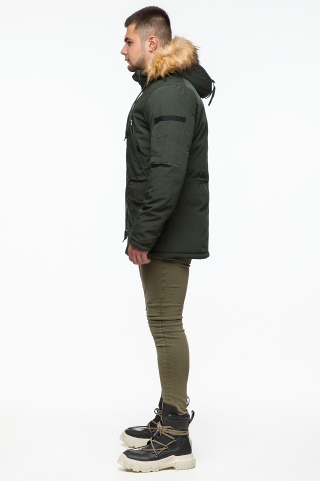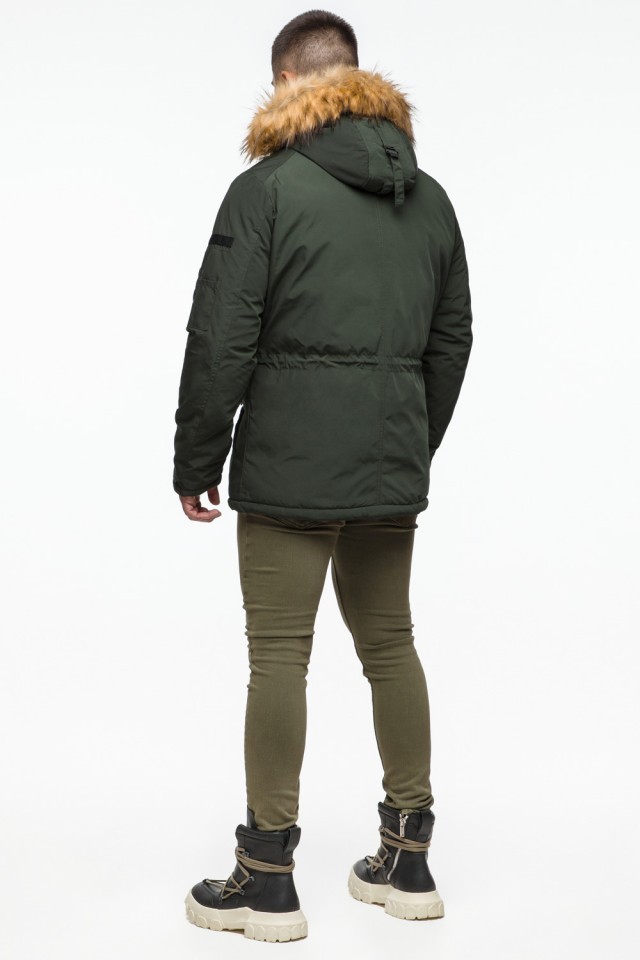 Темно-зеленая мужская молодежная зимняя парка на кнопках модель 25770