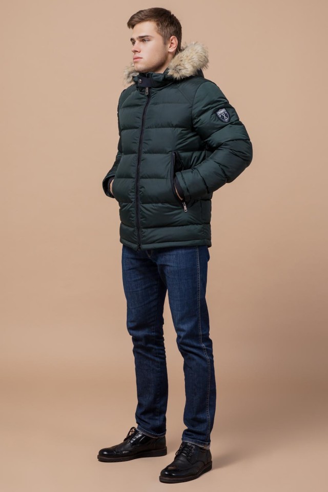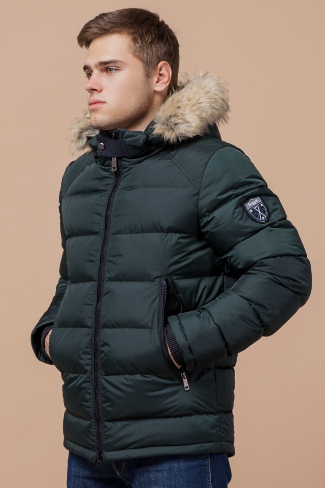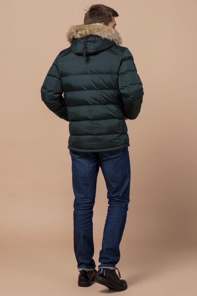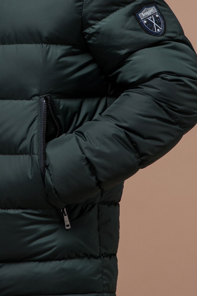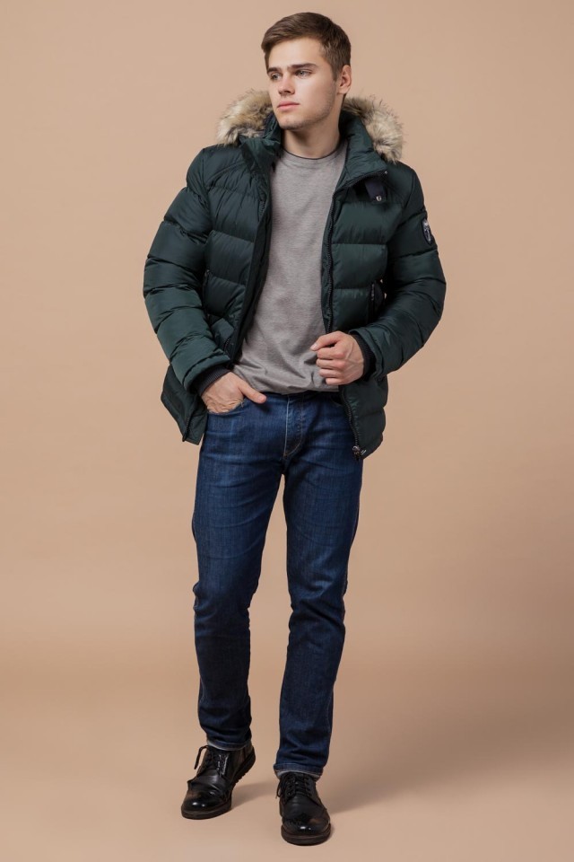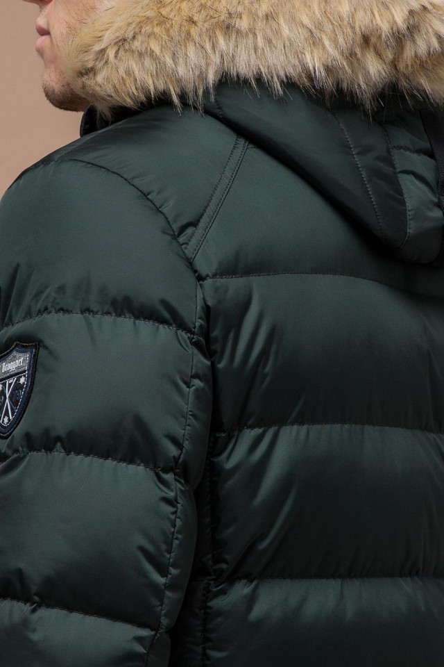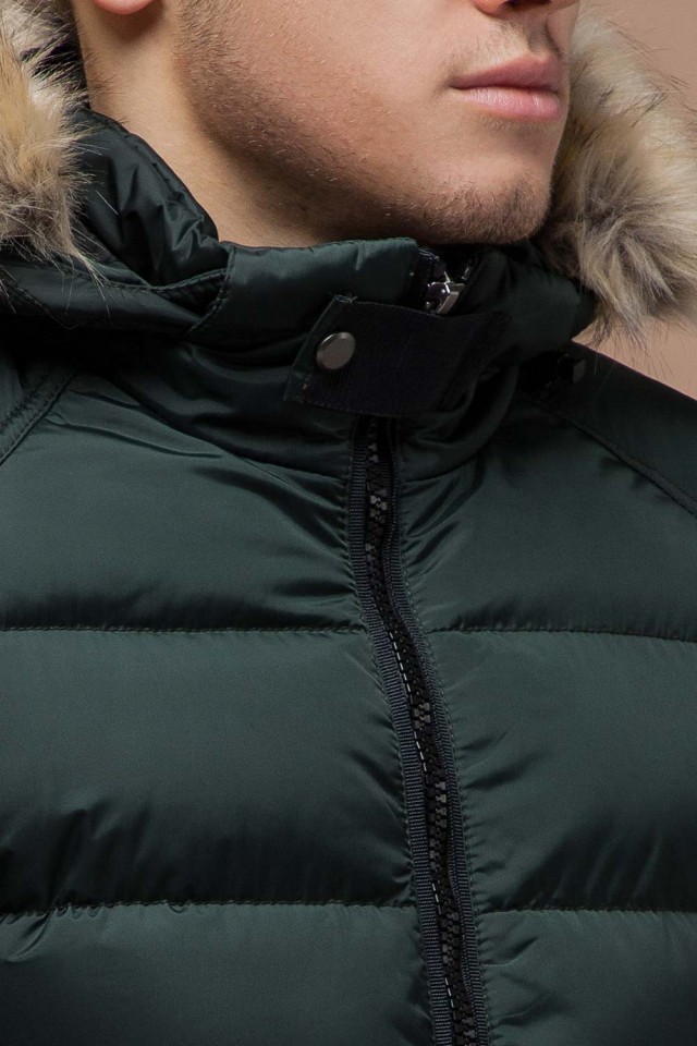 Темно-зеленая зимняя мужская куртка с манжетами модель 18540