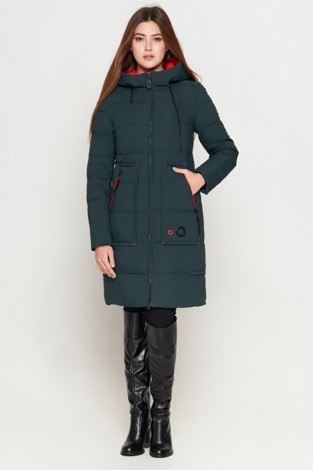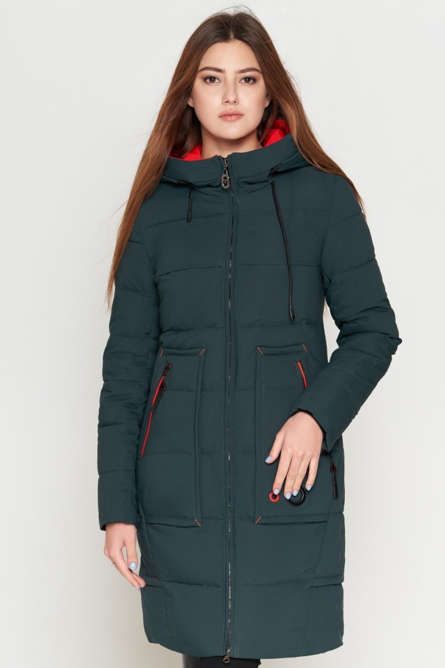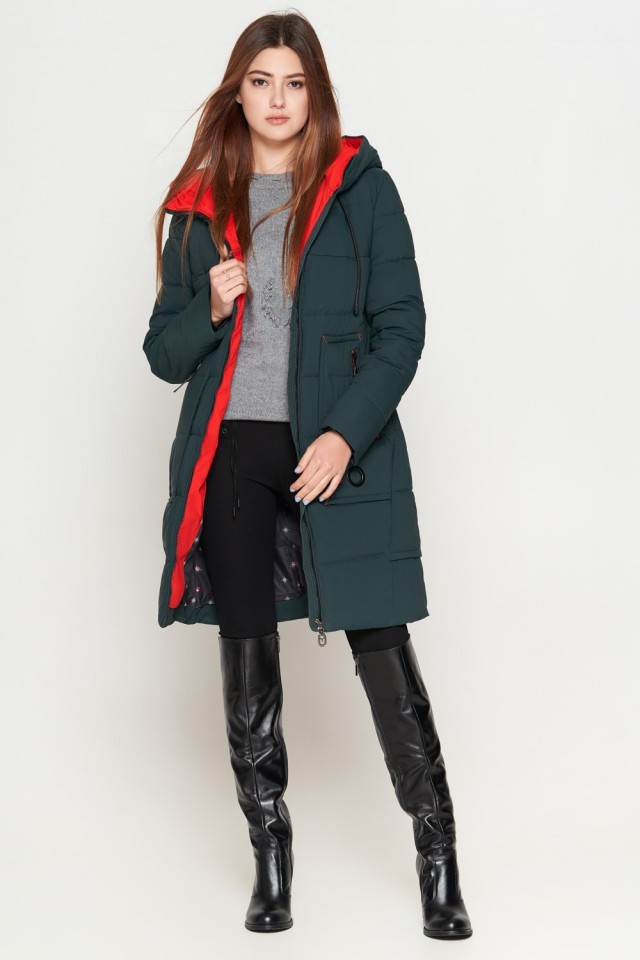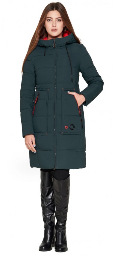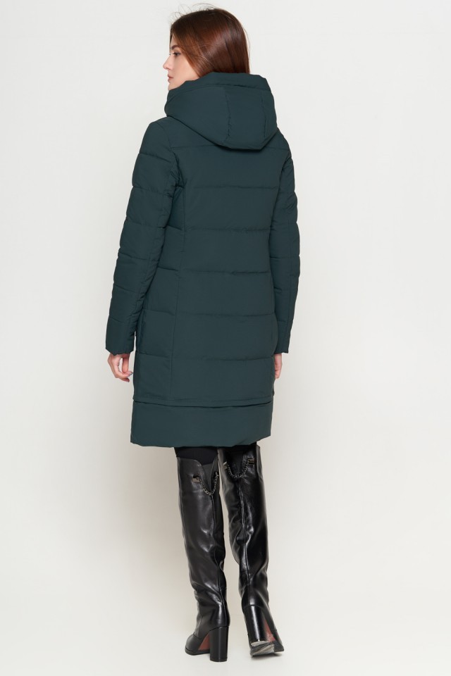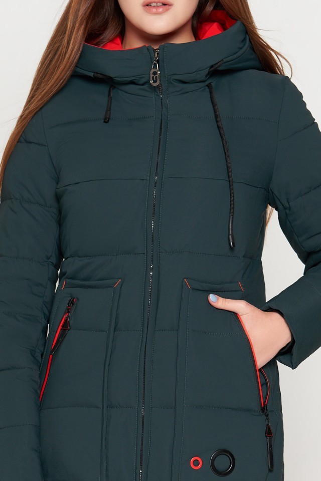 Темно-зеленый пуховик женский молодежный модель 25055
