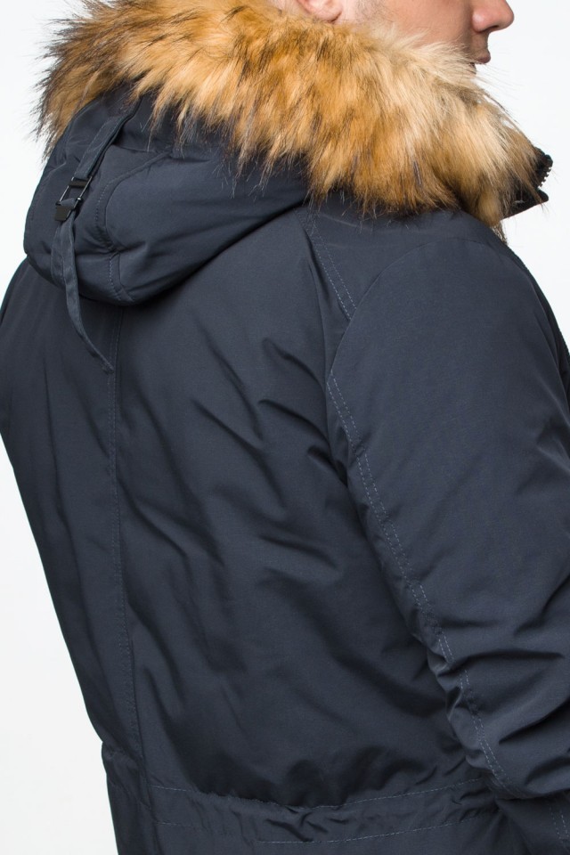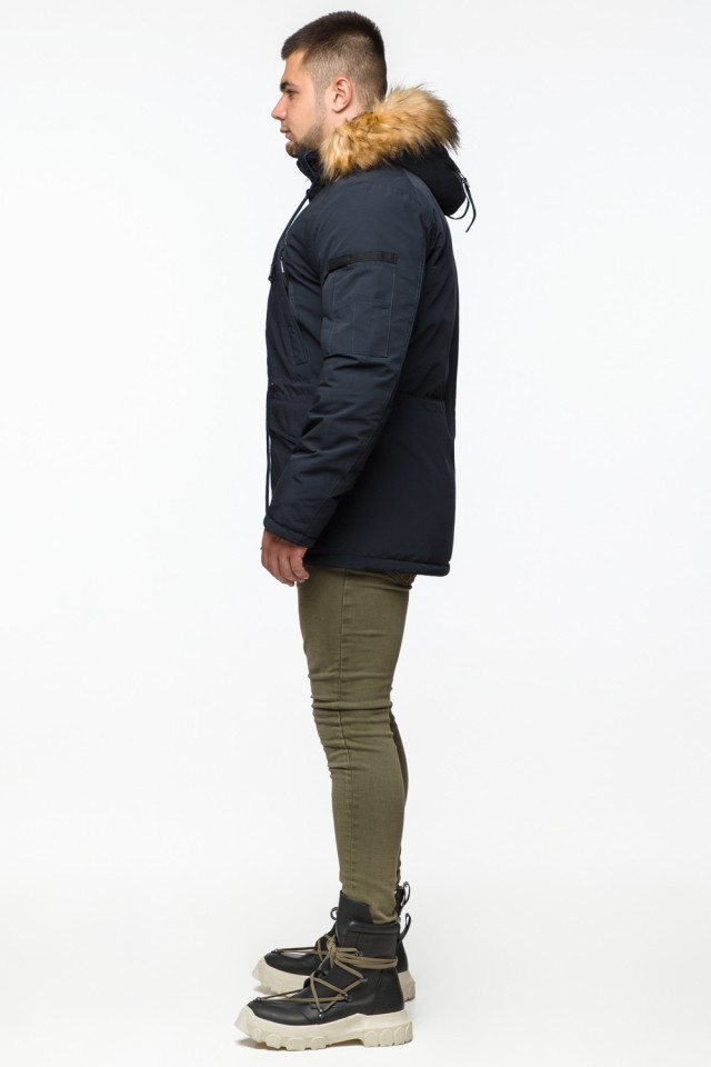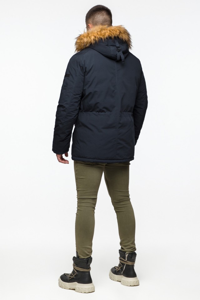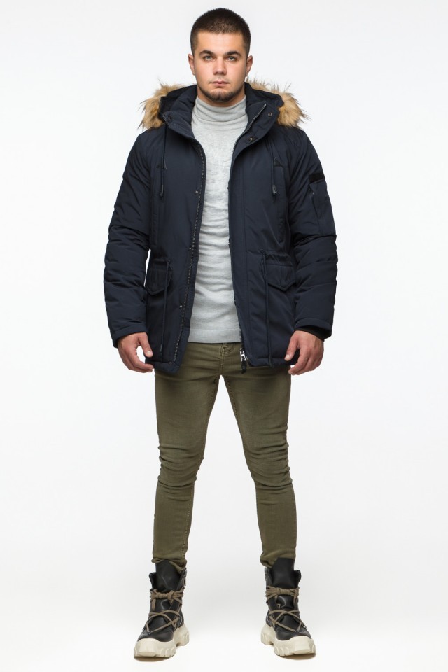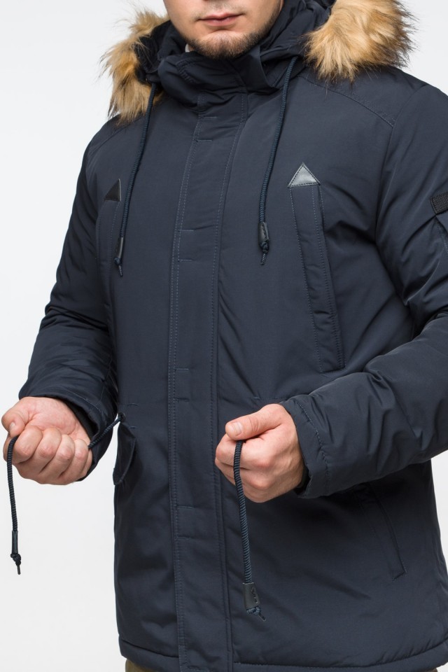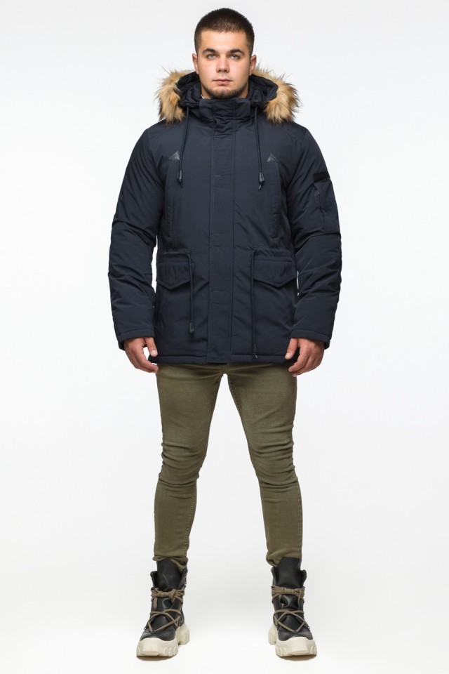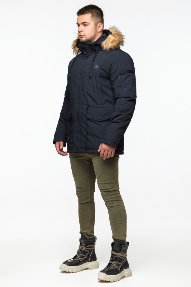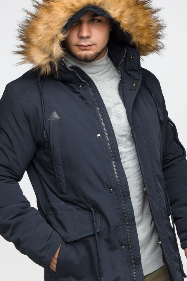 Теплая молодежная мужская парка темно-синяя на зиму модель 25770