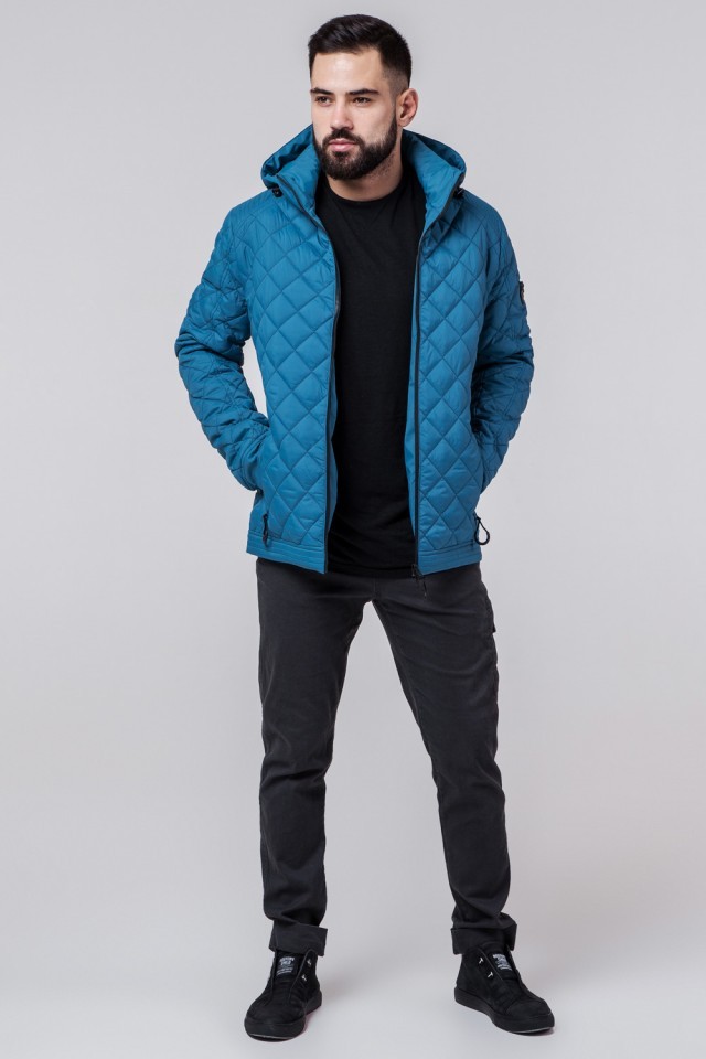 Ветровка стеганая осенне-весенняя бирюзовая мужская модель 1358