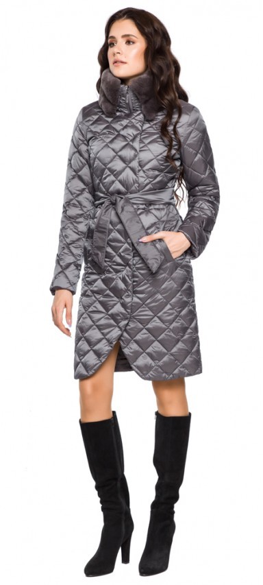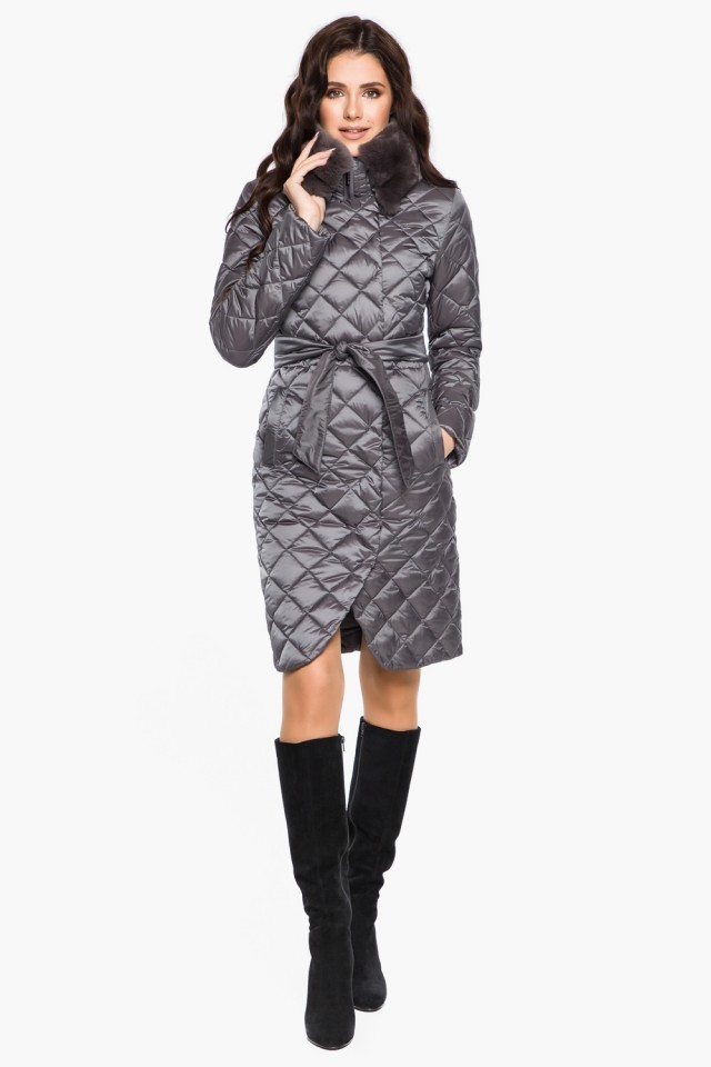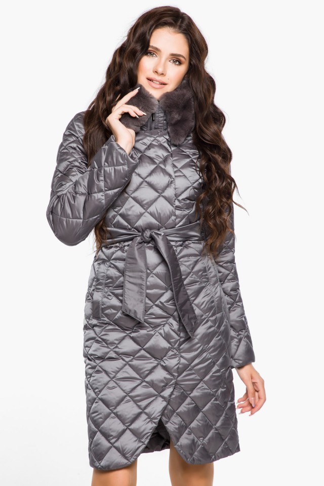 Воздуховик женский зимний жемчужно-серого цвета качественный модель 31030