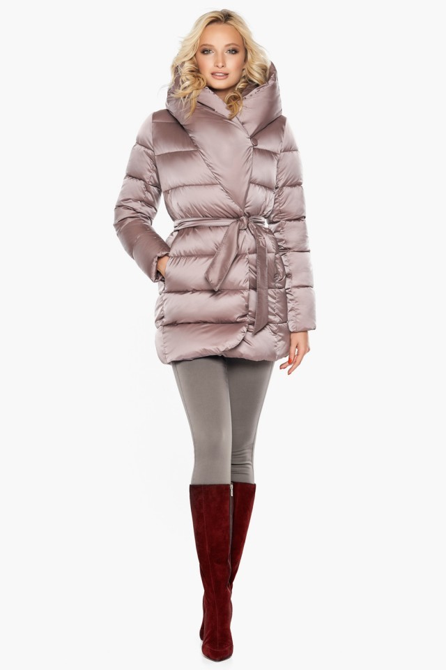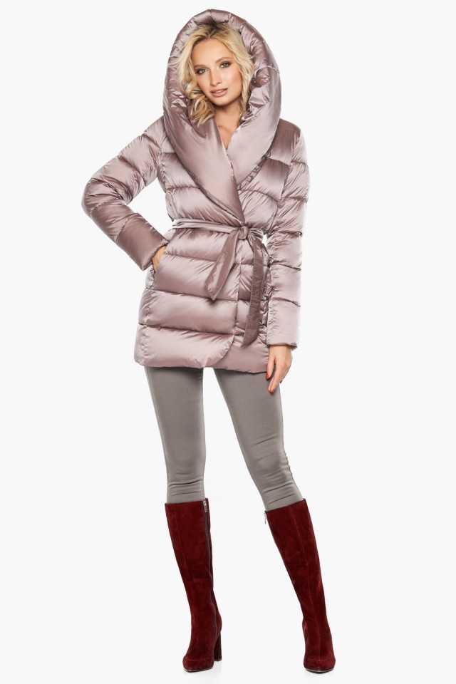 Воздуховик зимний женский пудрового цвета модель 31064