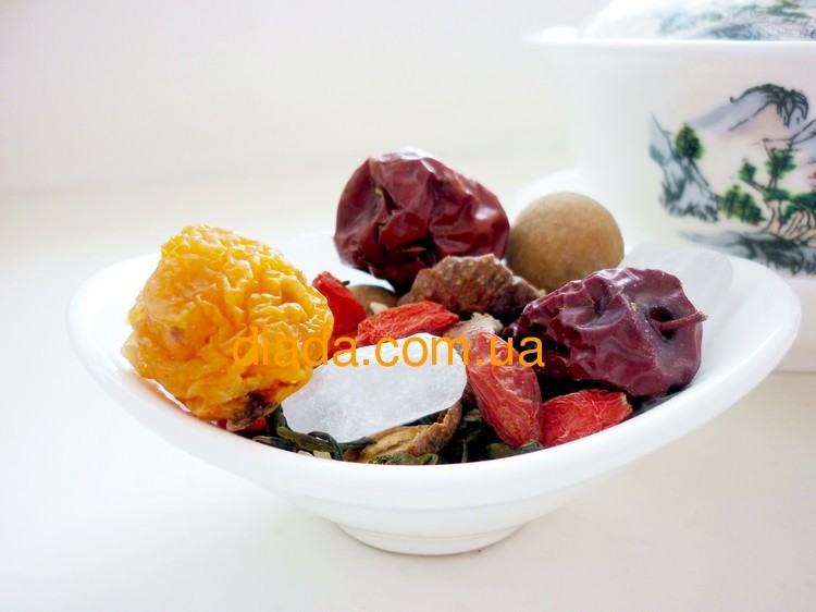 Зеленый чай с годжи, фруктами, хризантемами и сахаром