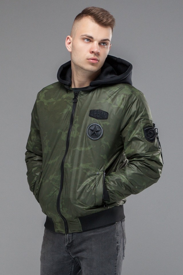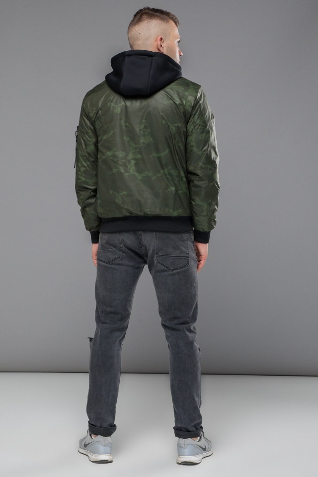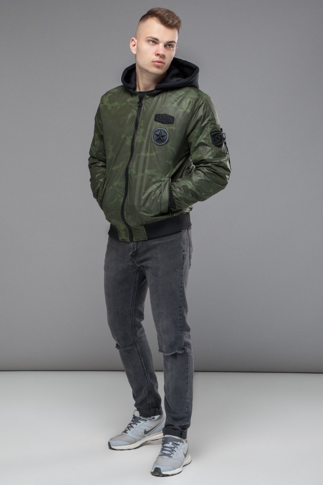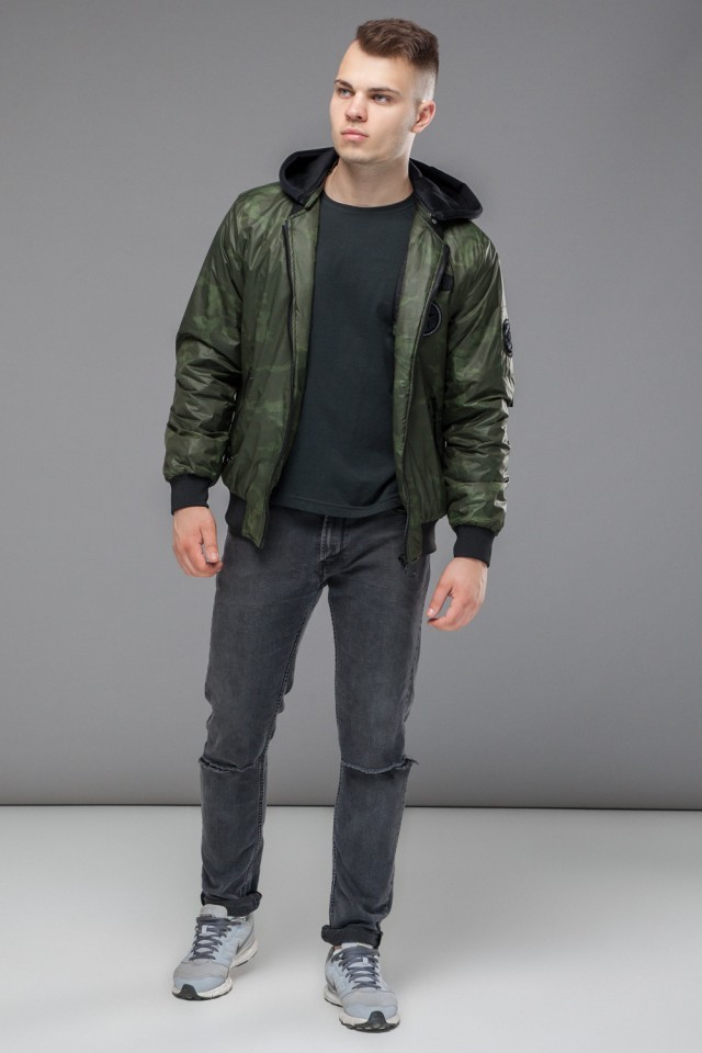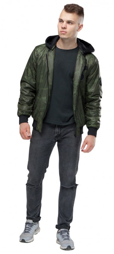 Зеленый осенне-весенний молодежный бомбер для мужчин модель 14262