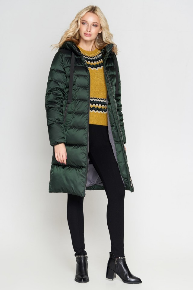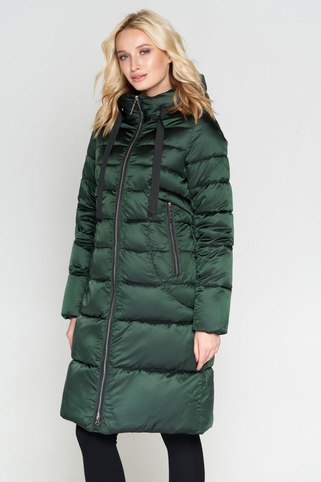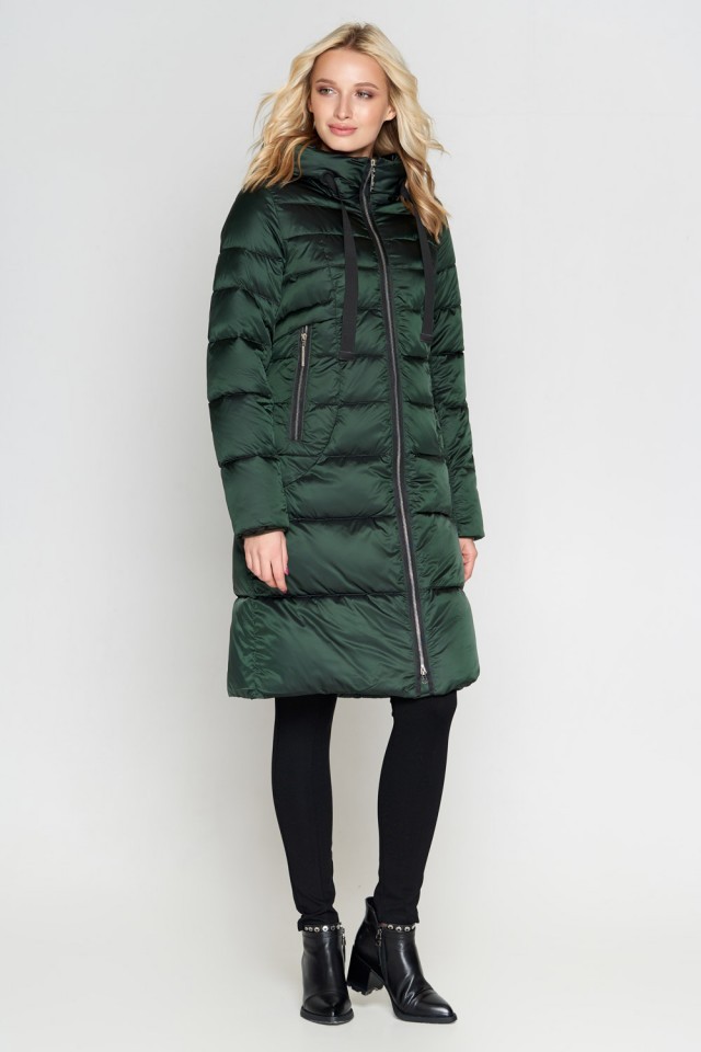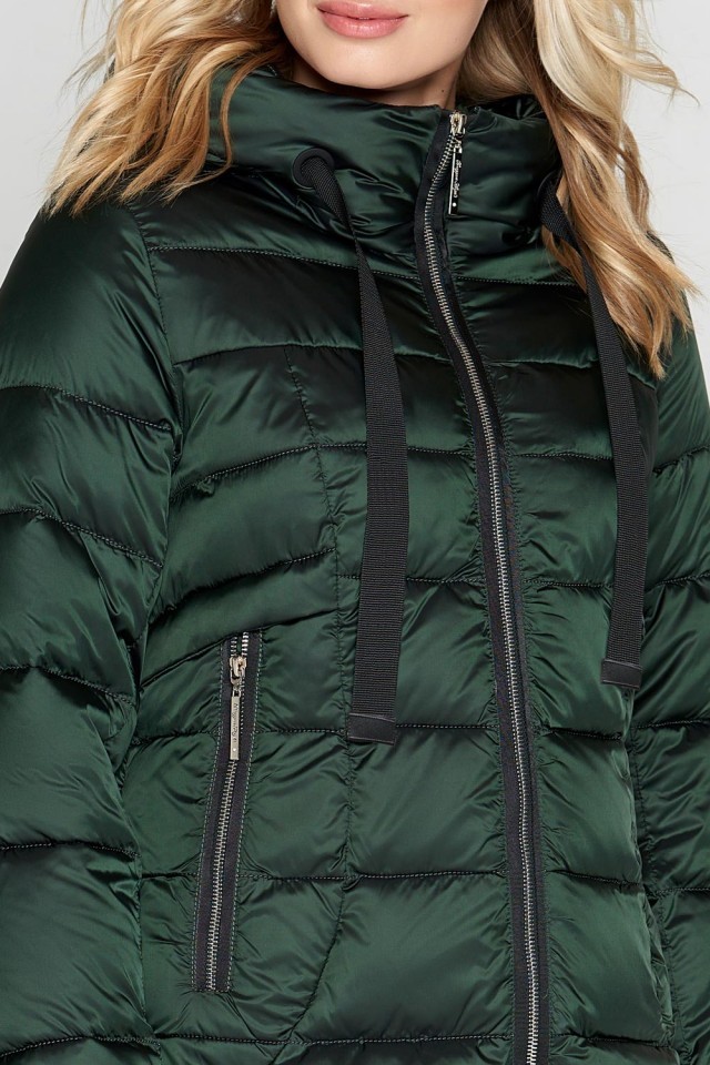 Зеленый зимний воздуховик женский с ветрозащитной планкой модель 47250