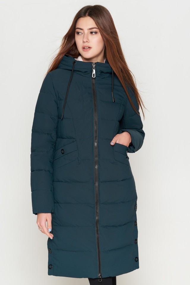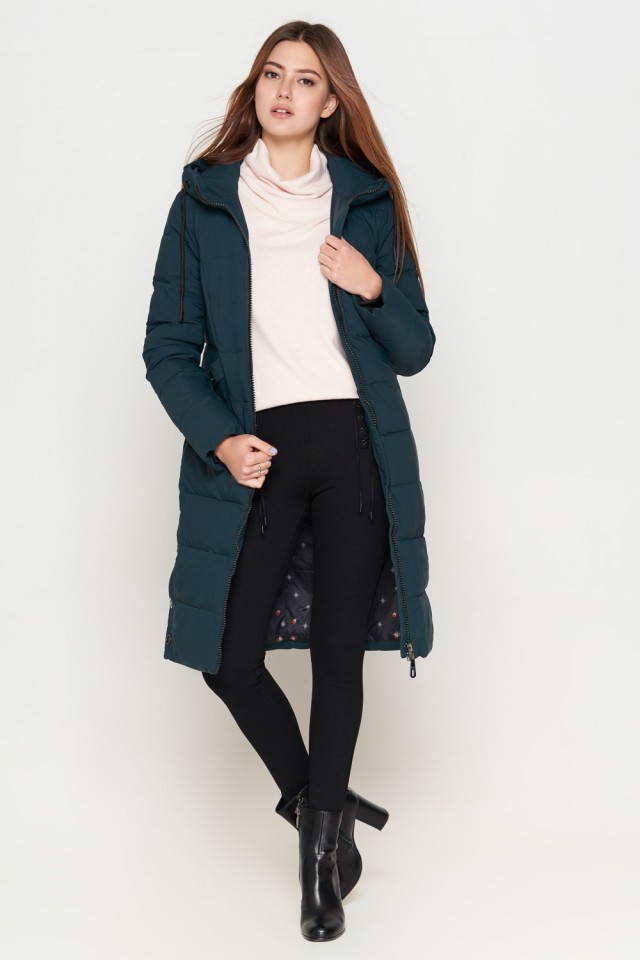 Женский бирюзовый зимний пуховик молодежный модель 25245