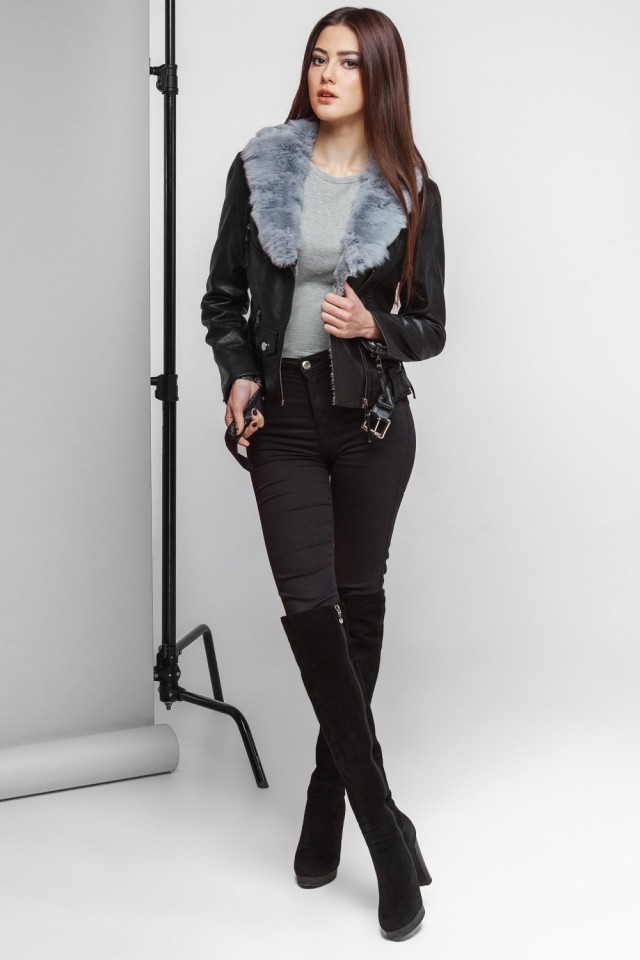 Женский молодежный весенне-осенний пуховик цвет черный-серый модель 25692