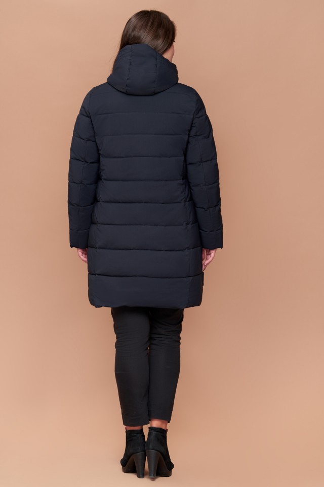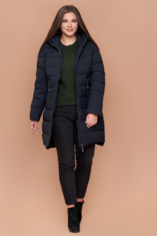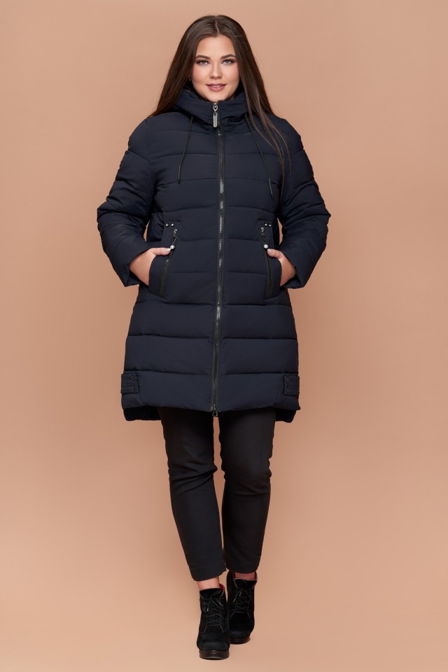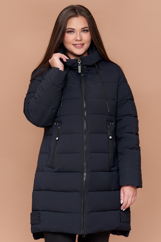 Женский пуховик темно-синий зимний большого размера модель 25225