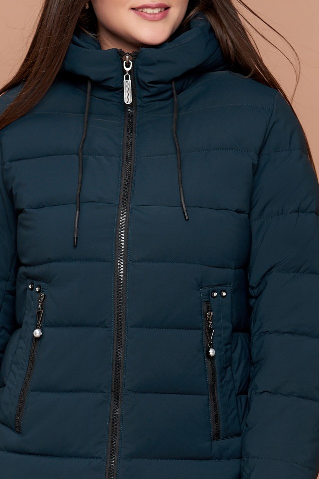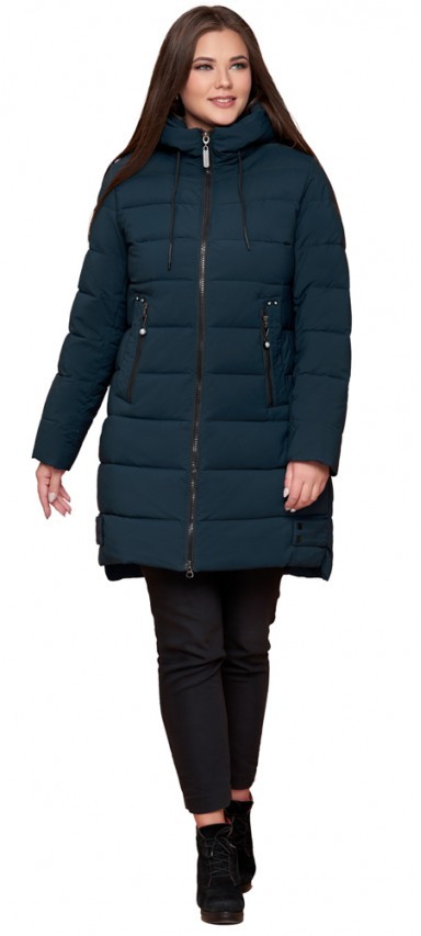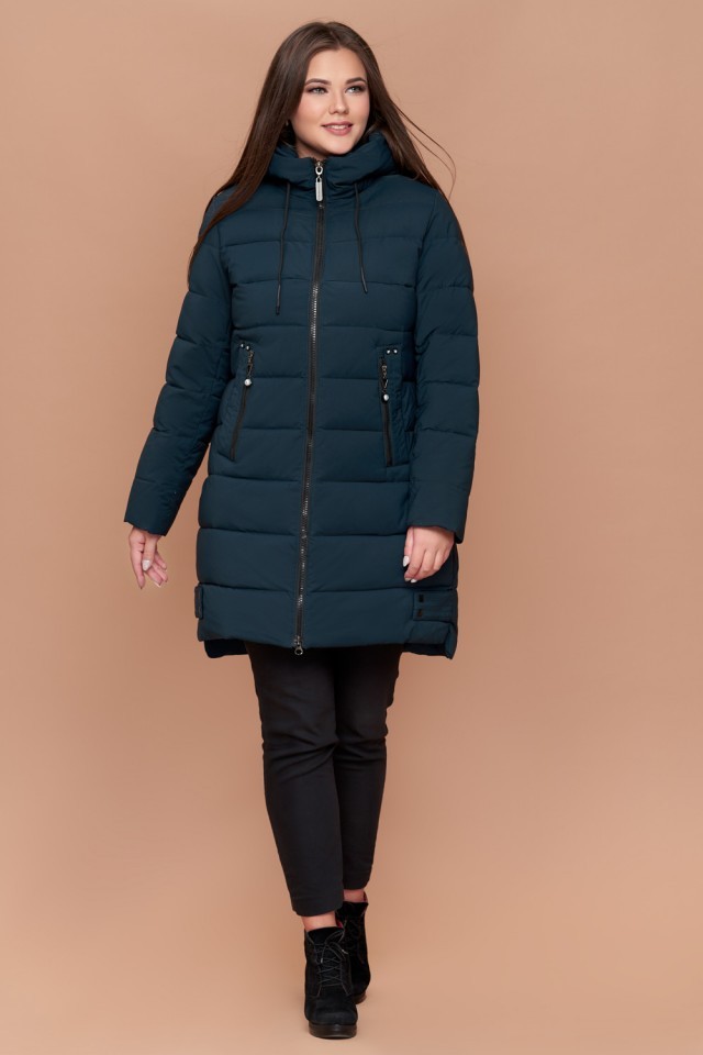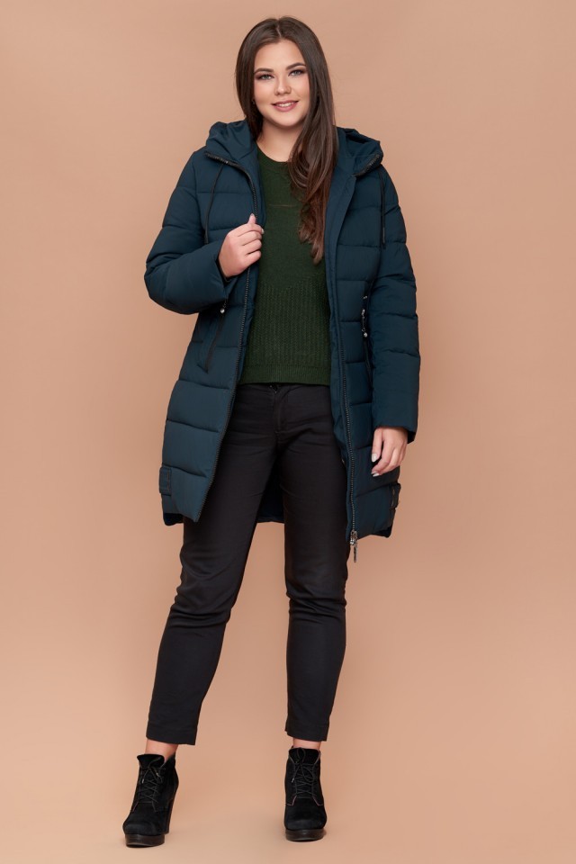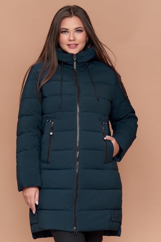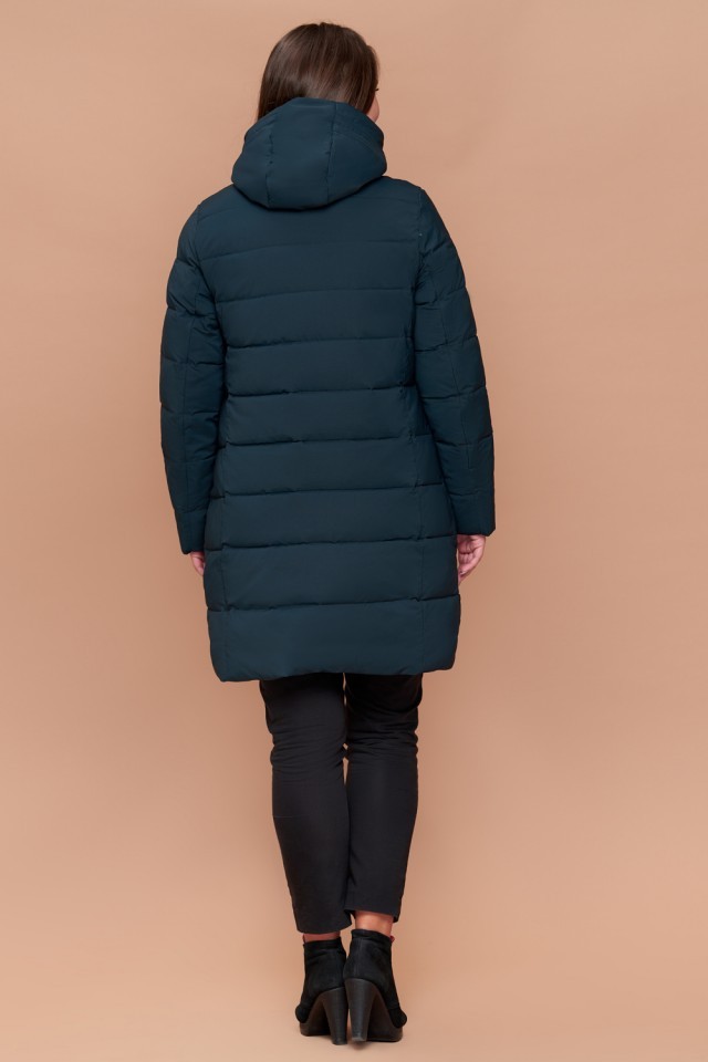 Женский пуховик зимний большого размера темно-зеленого цвета модель 25225