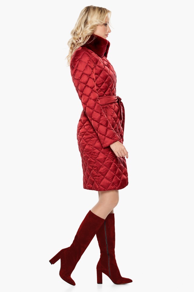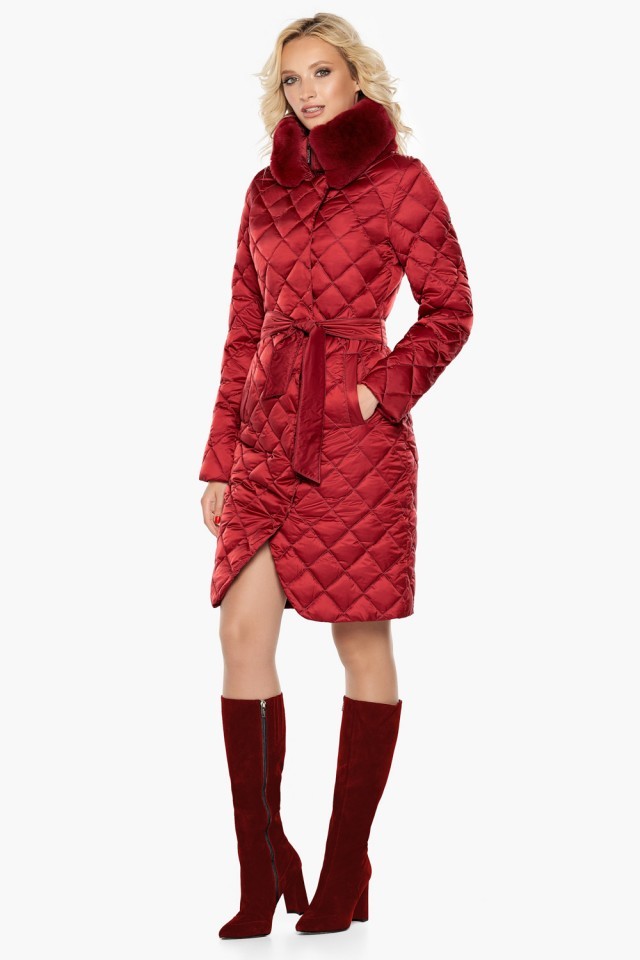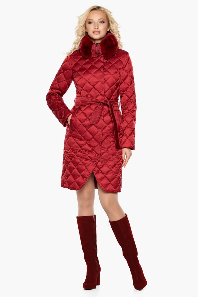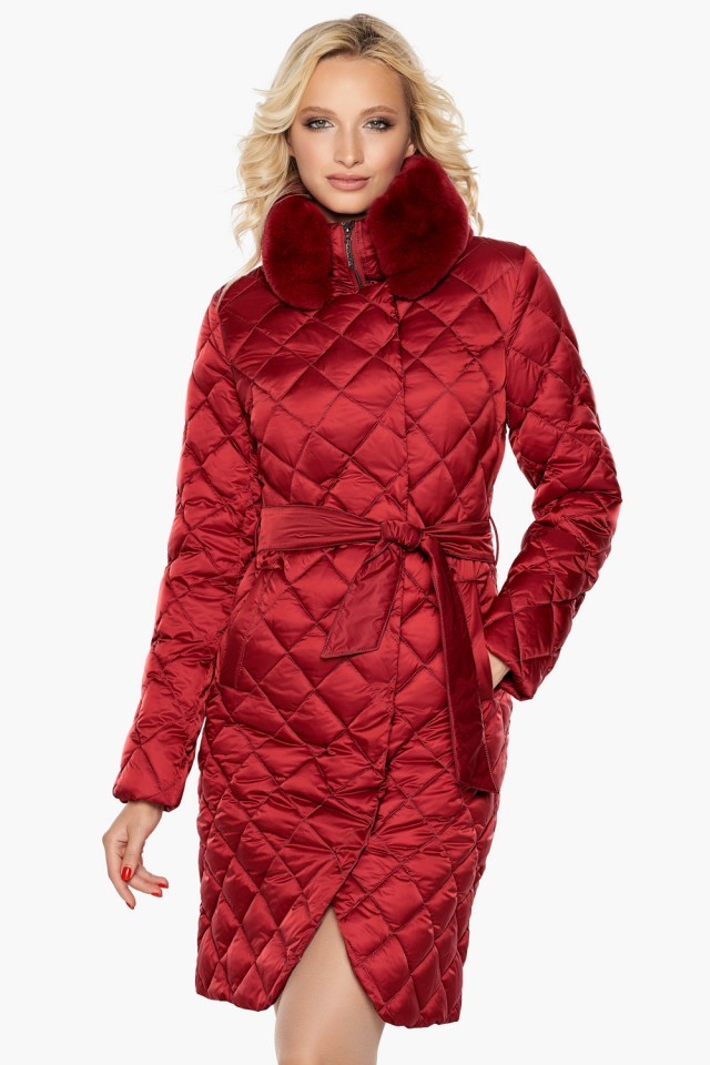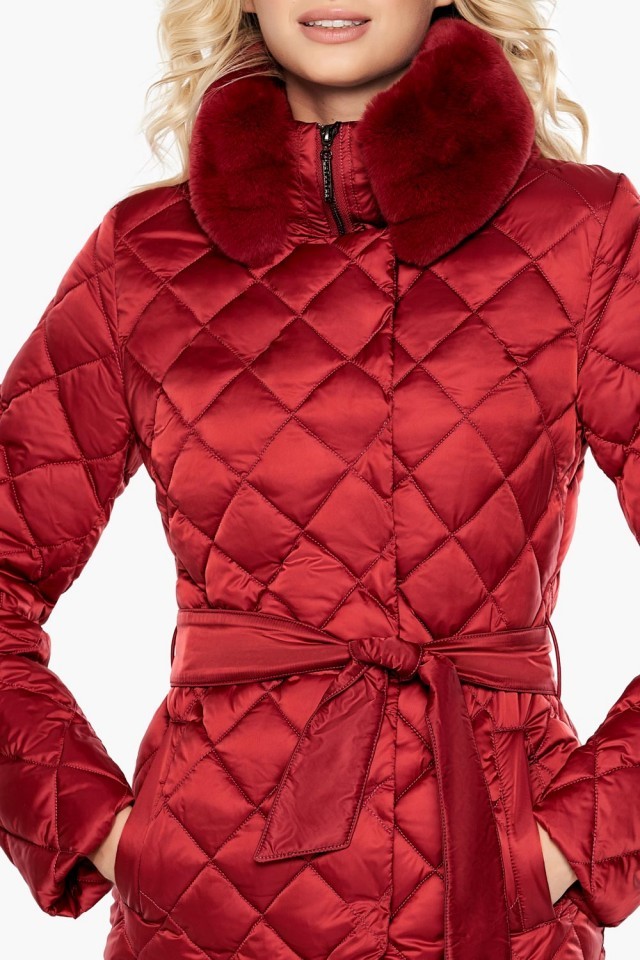 Женский теплый воздуховик рубинового цвета на зиму модель 31030