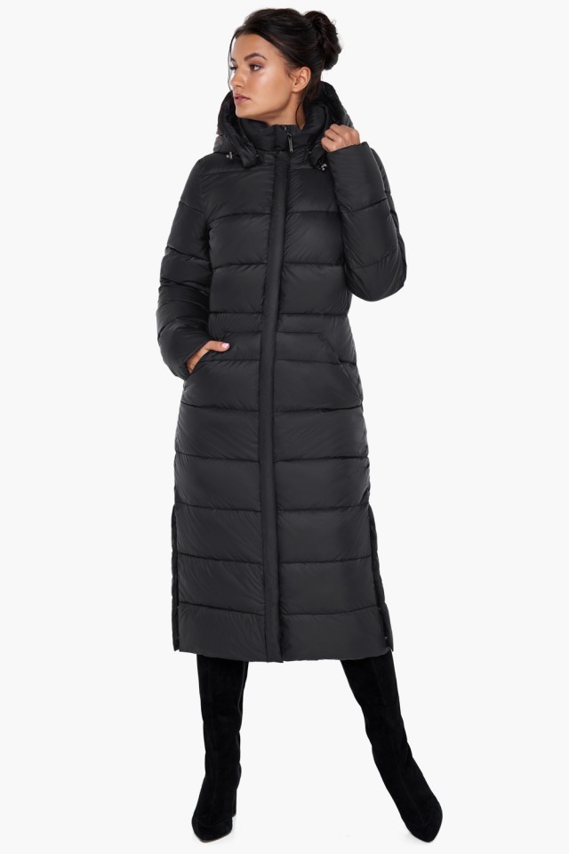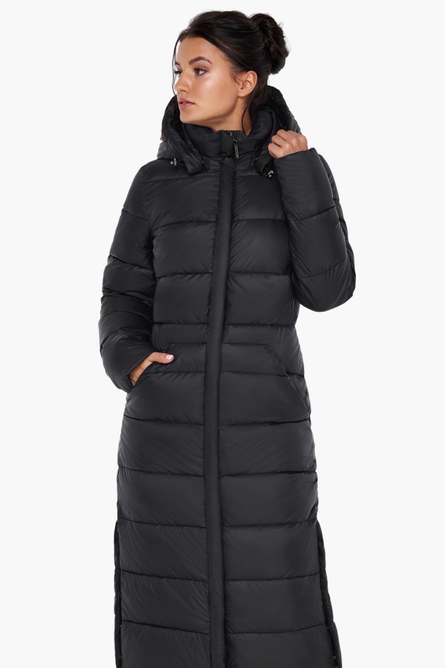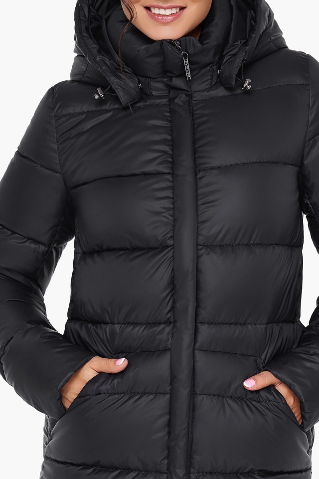 Женский воздуховик черный с капюшоном зимний модель 31007