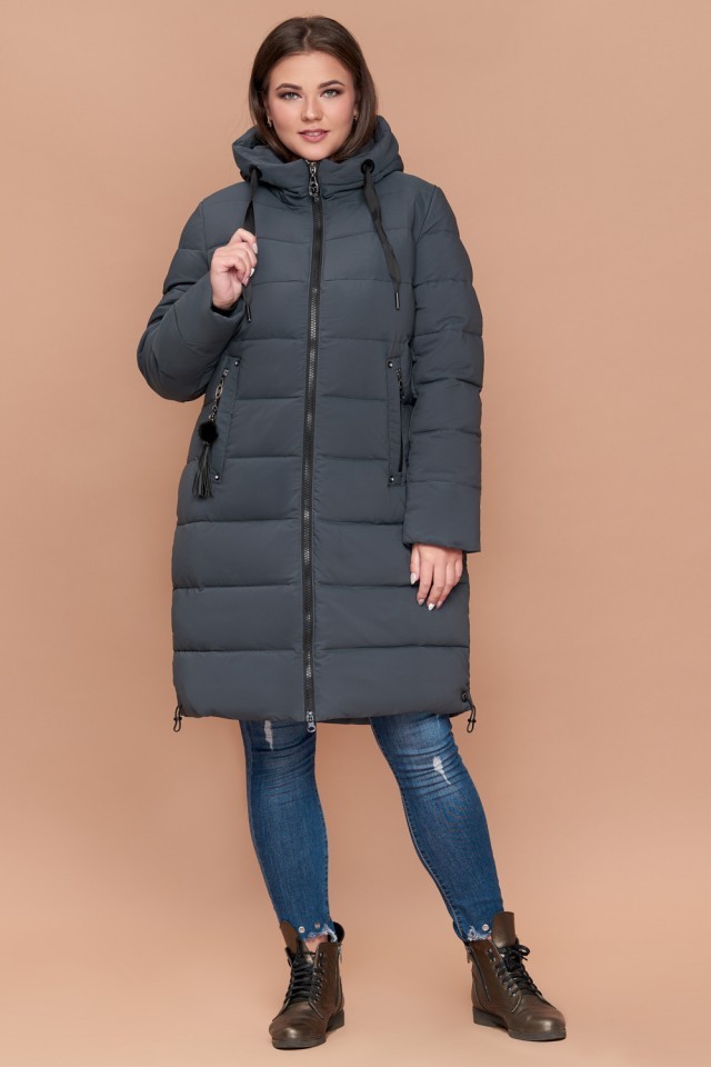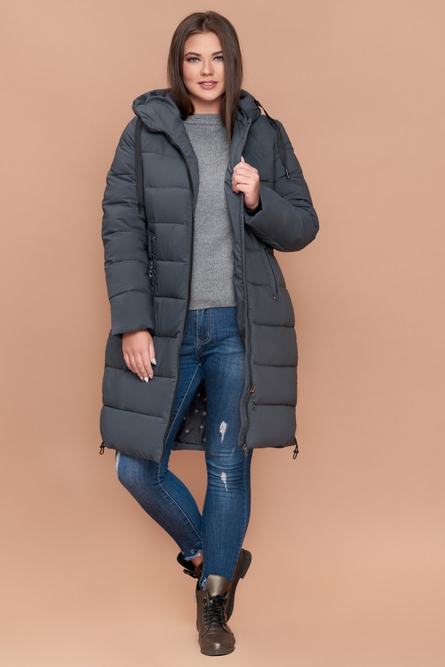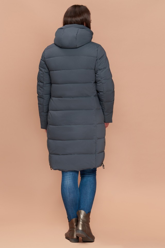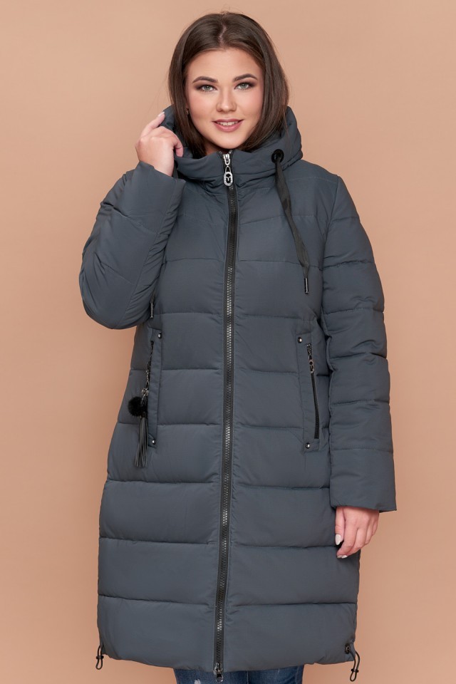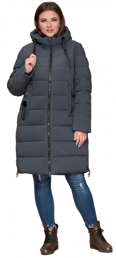 Женский зимний пуховик большого размера серо-зеленого цвета модель 25045