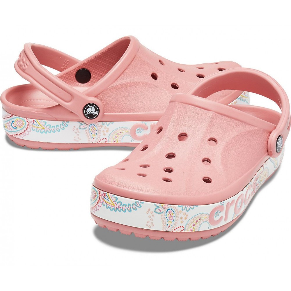 Женские кроксы Crocs Bayaband Bandana Blossom — розовые сабо с ярким принтом