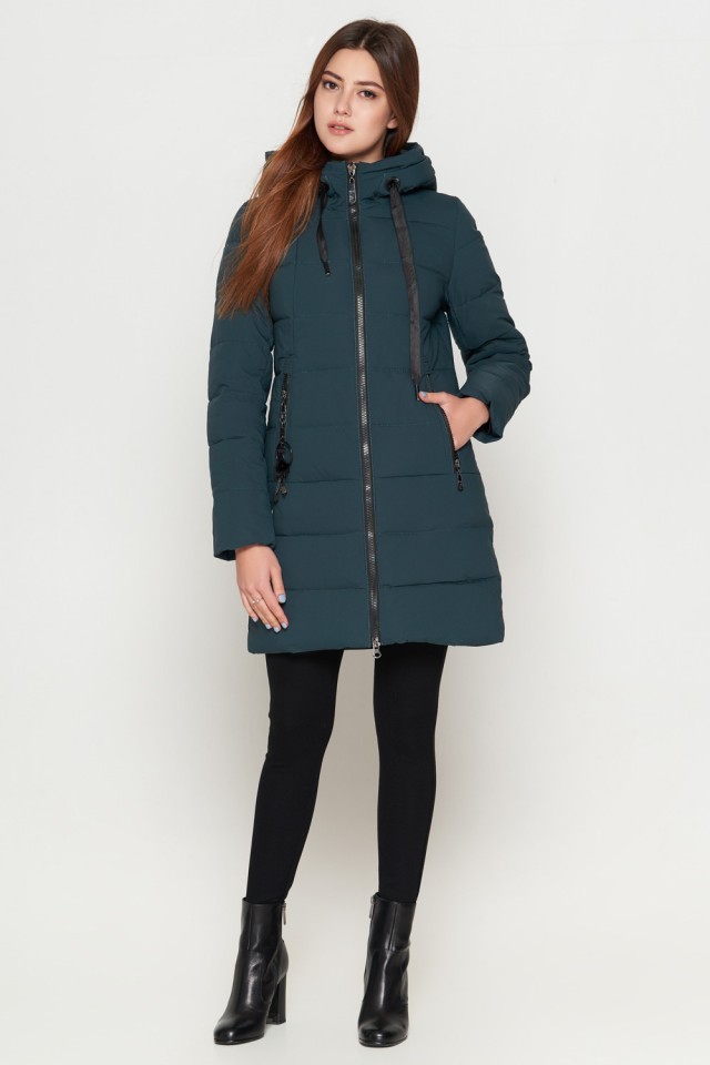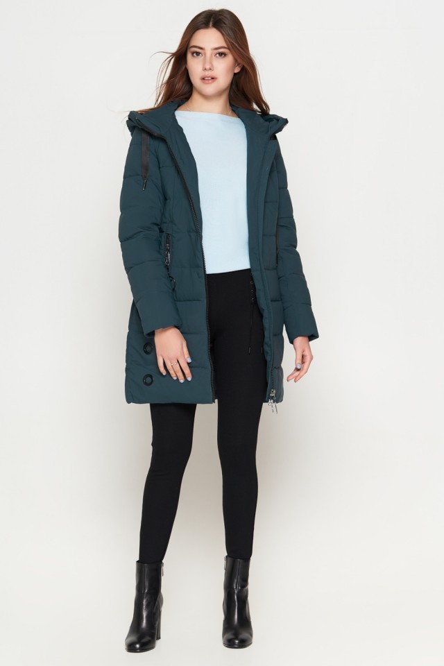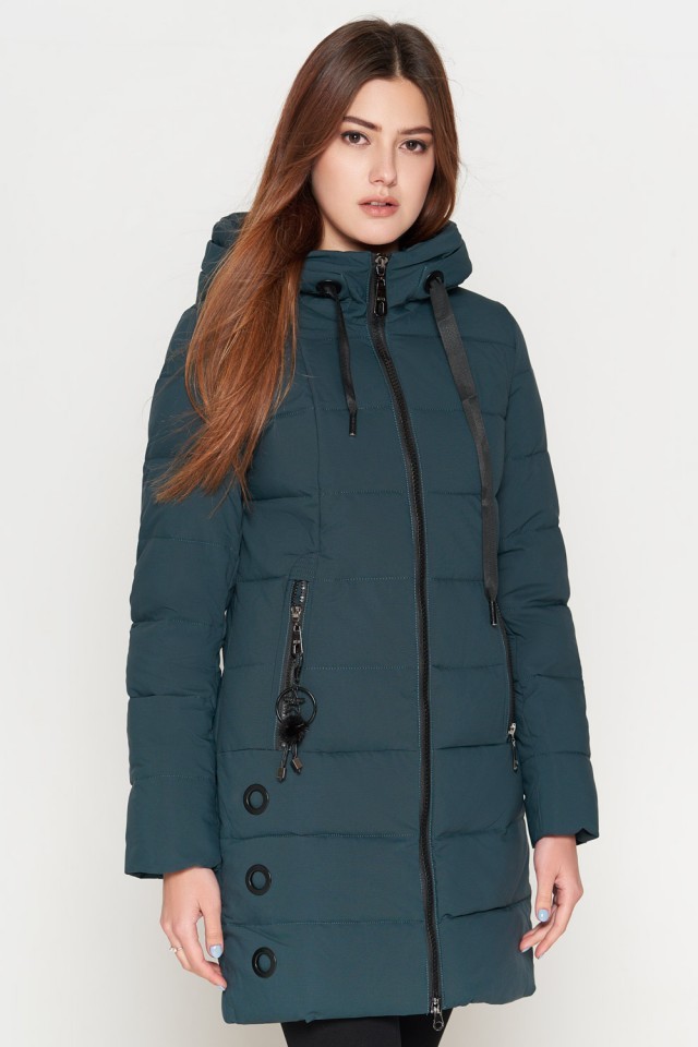Зимний молодежный бирюзовый пуховик женский модель 25125