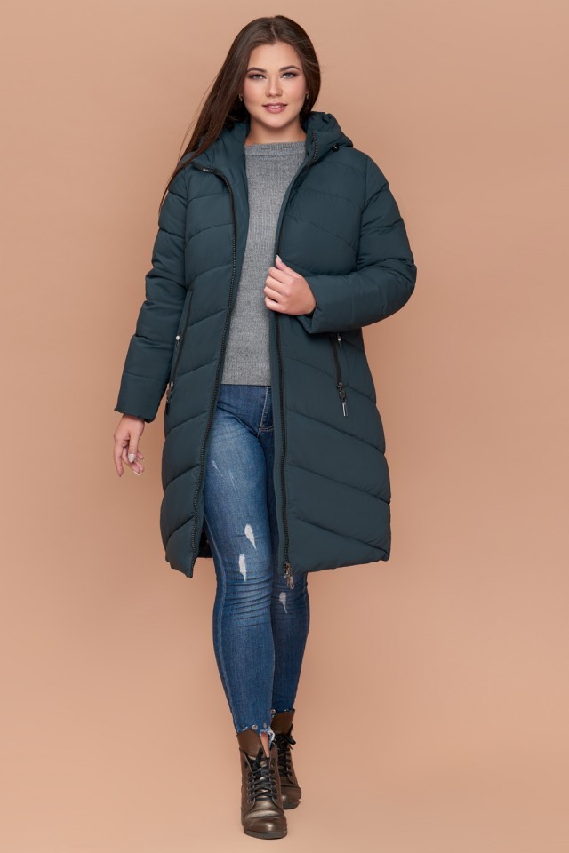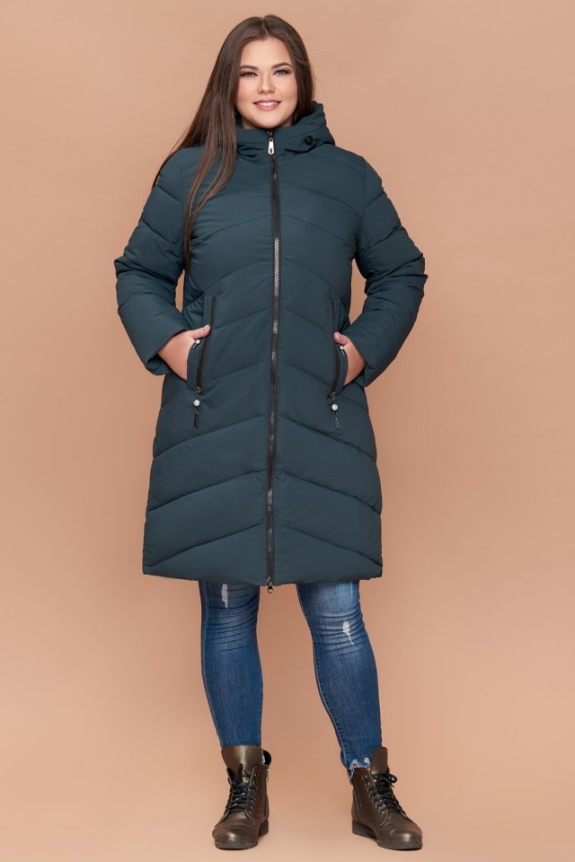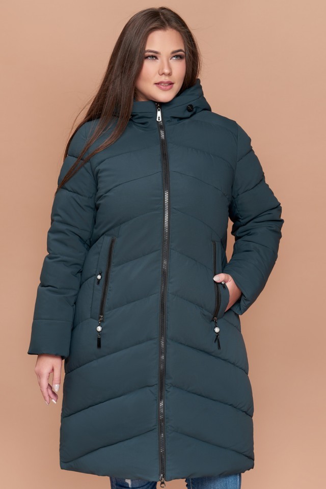 Зимний пуховик бирюзовый большого размера женский модель 25015