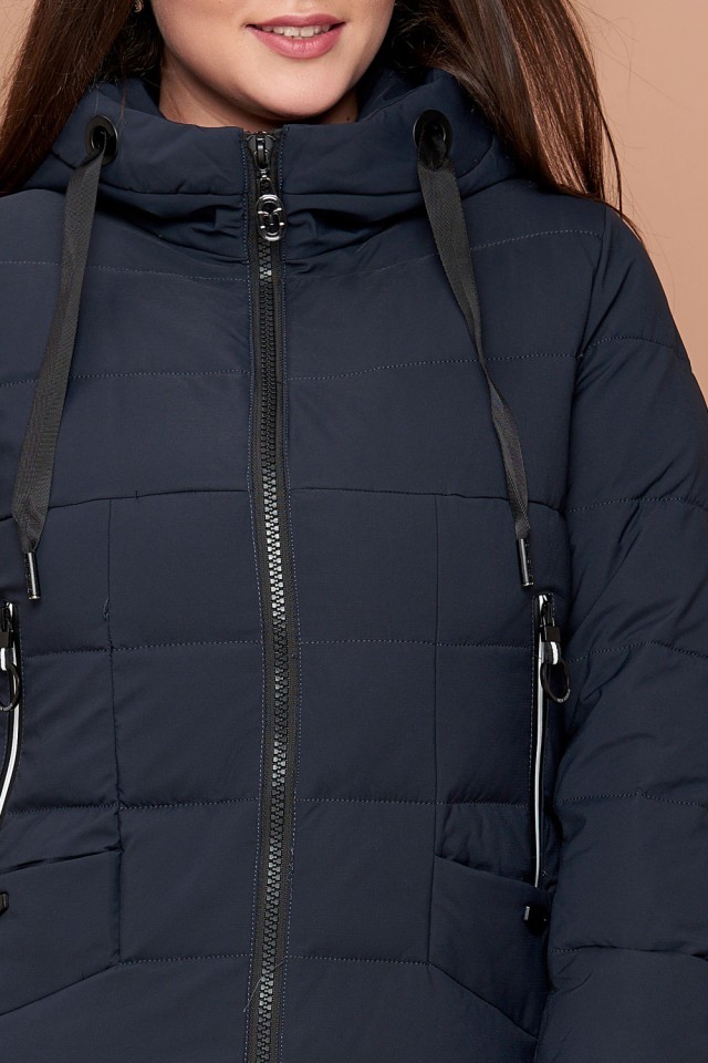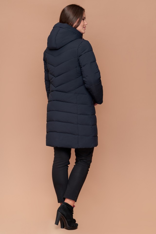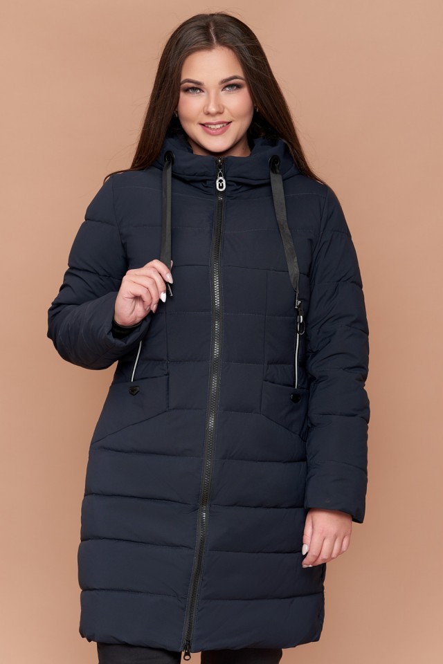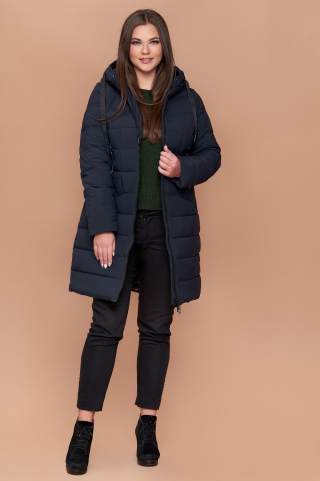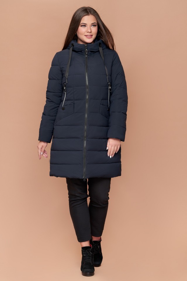 Зимний пуховик женский темно-синий большого размера модель 25275