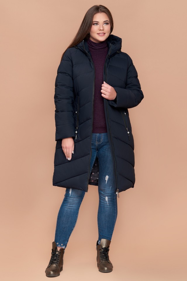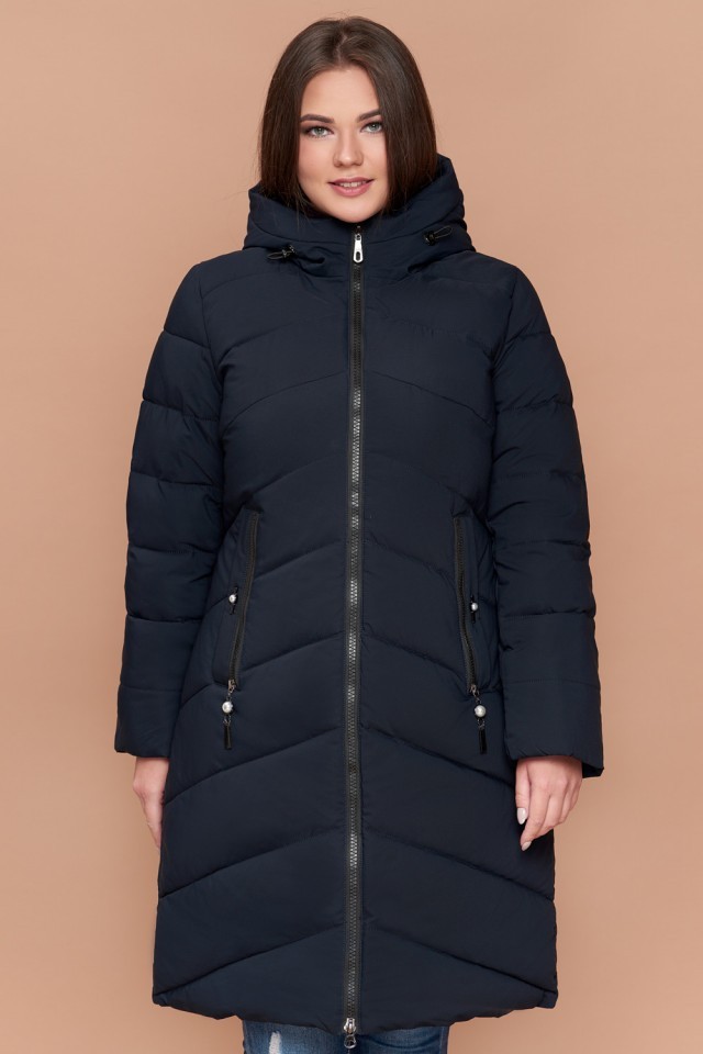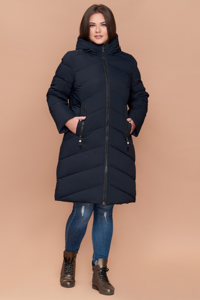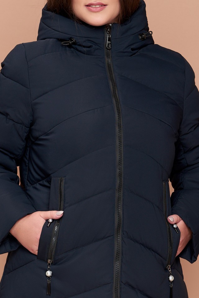 Зимний темно-синий женский пуховик большого размера модель 25015