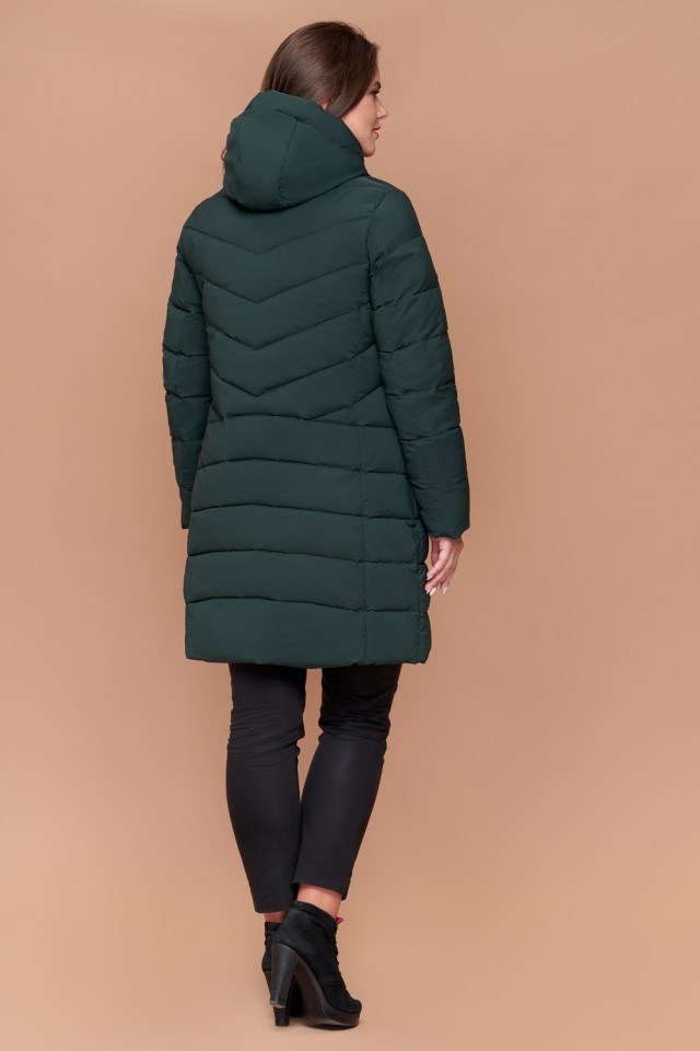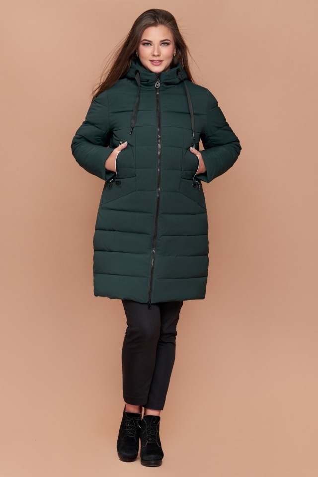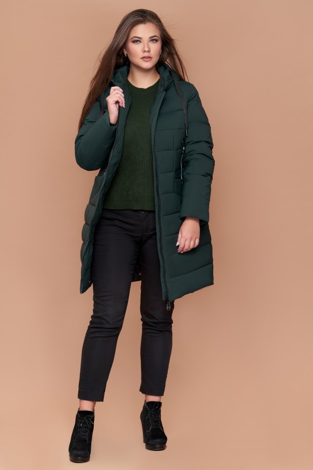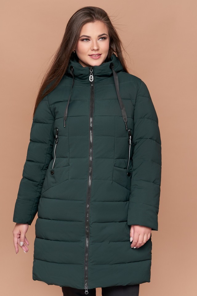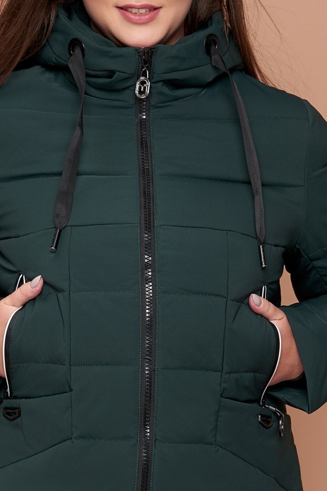Зимний темно-зеленый пуховик большого размера женский модель 25275