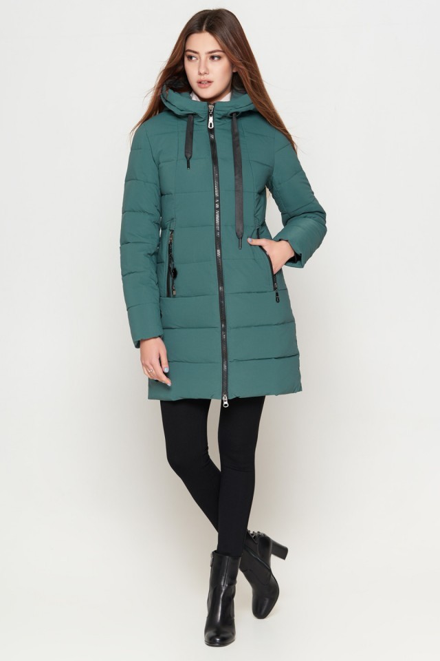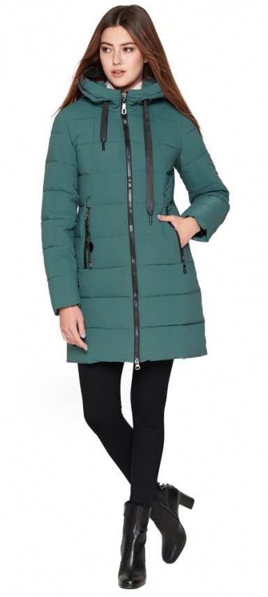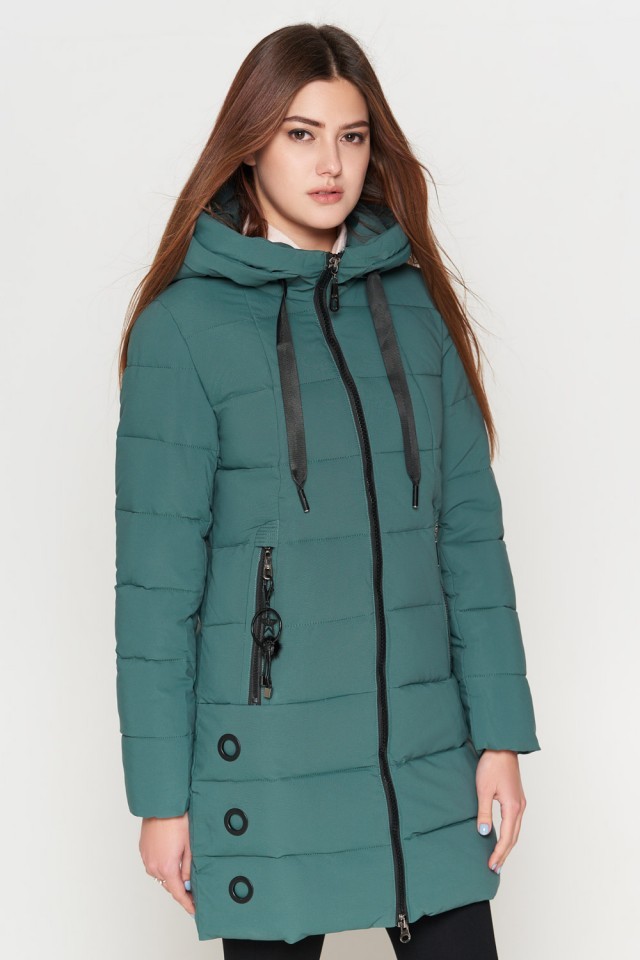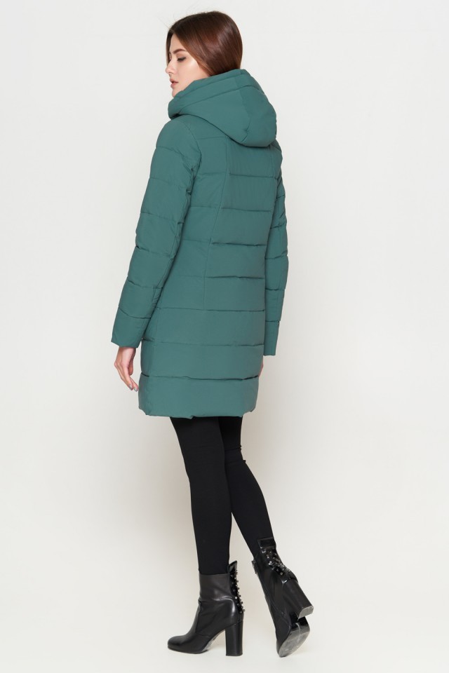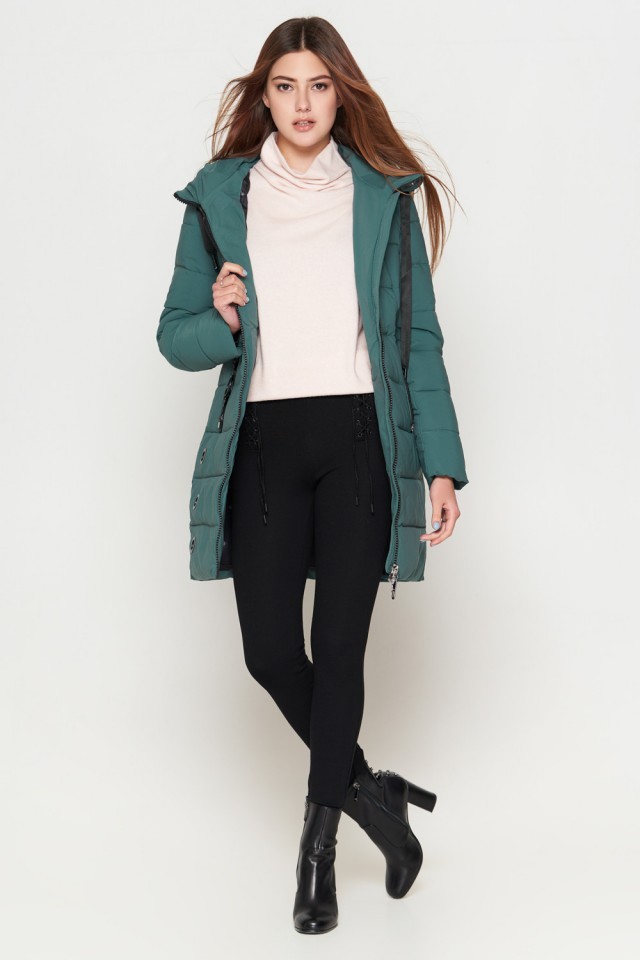 Зимний женский молодежный пуховик цвет зеленый модель 25125