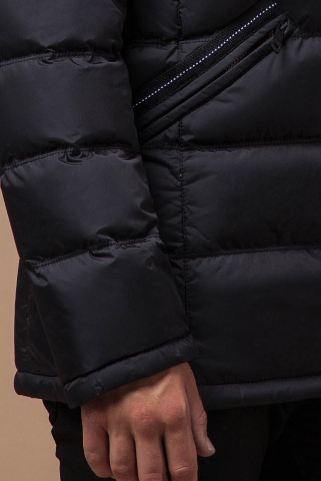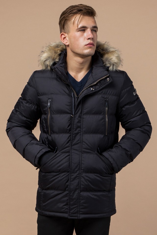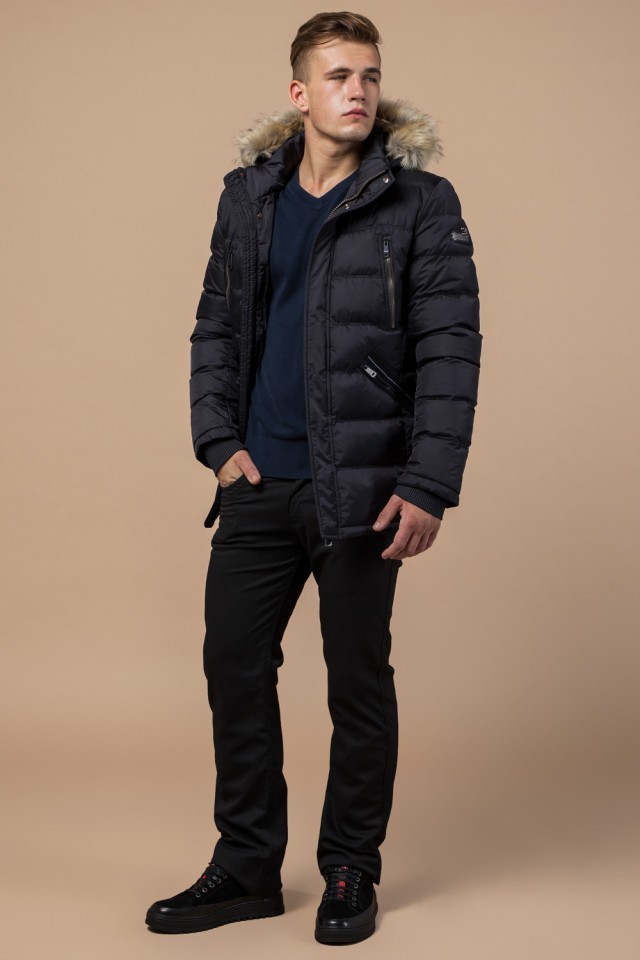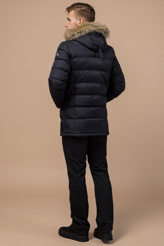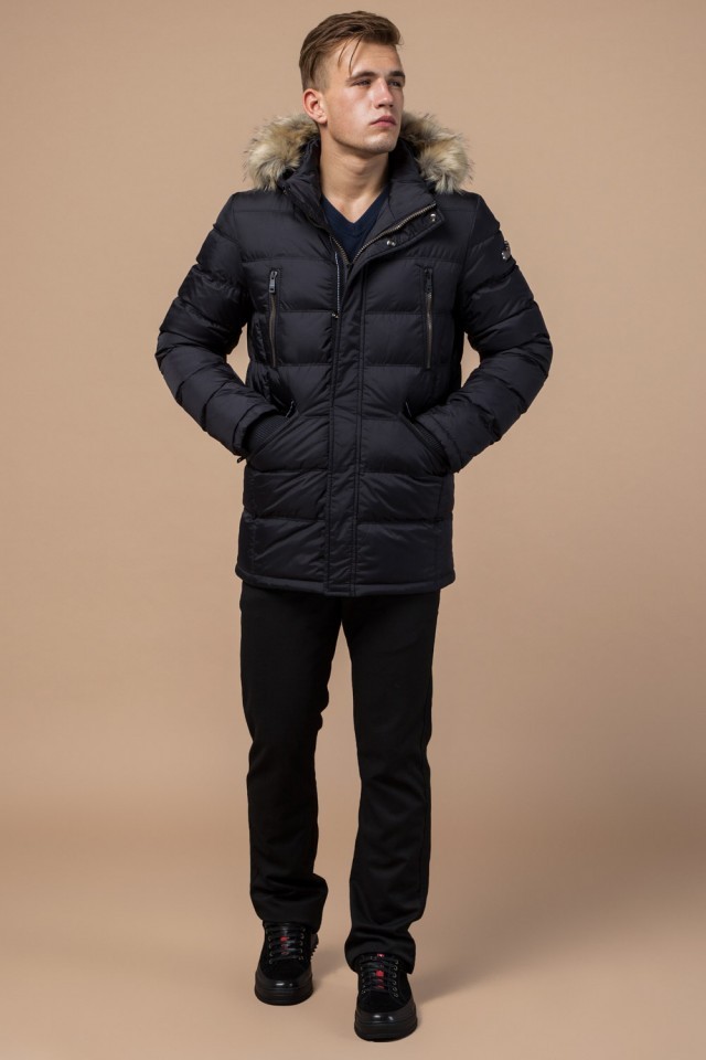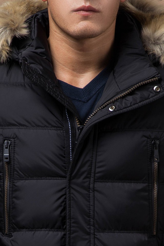 Зимняя мужская черная куртка с меховой опушкой модель 31042