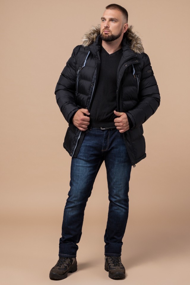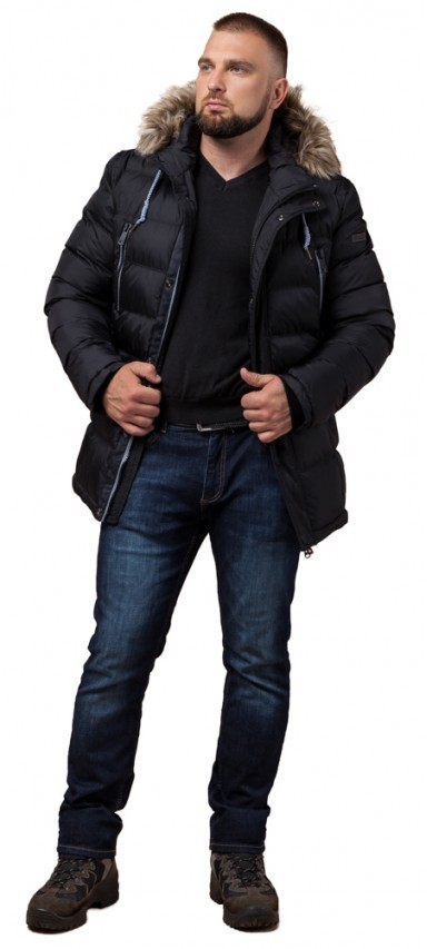 Зимняя мужская куртка практичная черная модель 21226